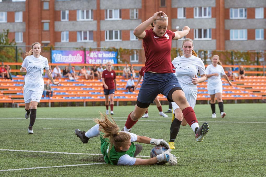 Komandas aizsardzības balsts Denīze Marta Medinika guva fantastiskus vārtus, raidot bumbu no soda laukuma kreisās puses ārpuses pēc iegrieztās trajektorijas vārtu augšējā labajā stūrī. Un tad pienāca brīdis, kad komandas pamatvārtsardze  Elza Renāte Strazdiņa guva savus pirmos vārtus.