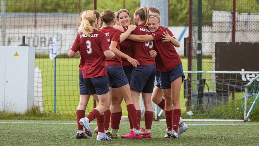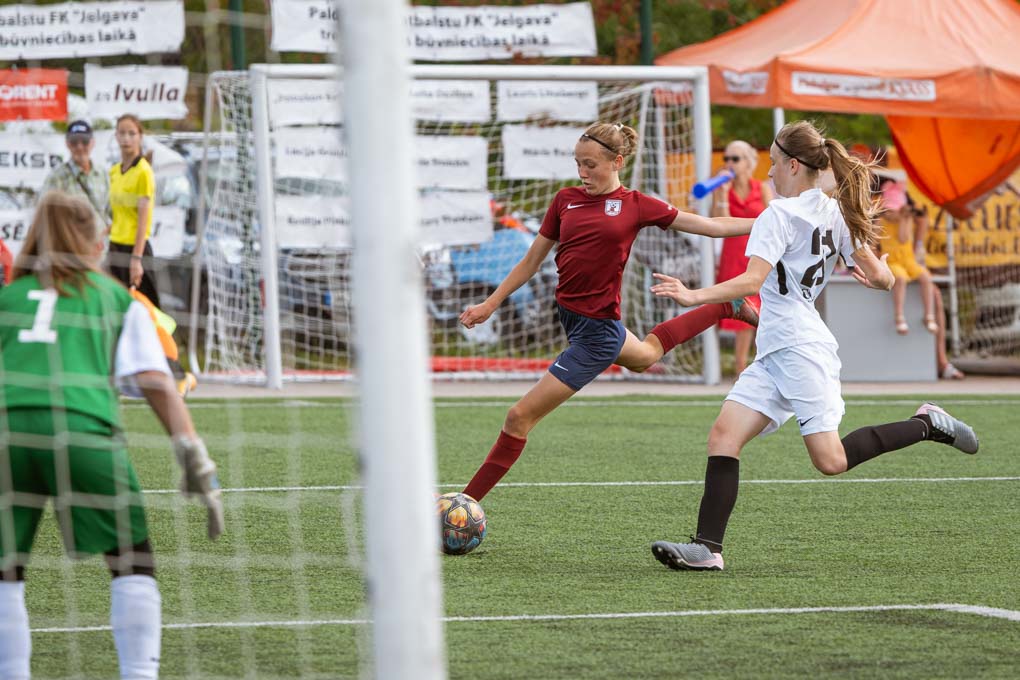 Sieviešu futbola komanda “FK Jelgava” 1. līgas devītās kārtas spēlē ar rezultātu 17:0 (8:0; 9:0) pārspēja pretinieces no “Liepājas futbola skola-2”. Ar četriem vārtu guvumiem spēlē atzīmējās pussardze Alise Keita Baltrušaite un uzbrucēja Santa Baltause.