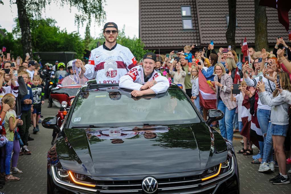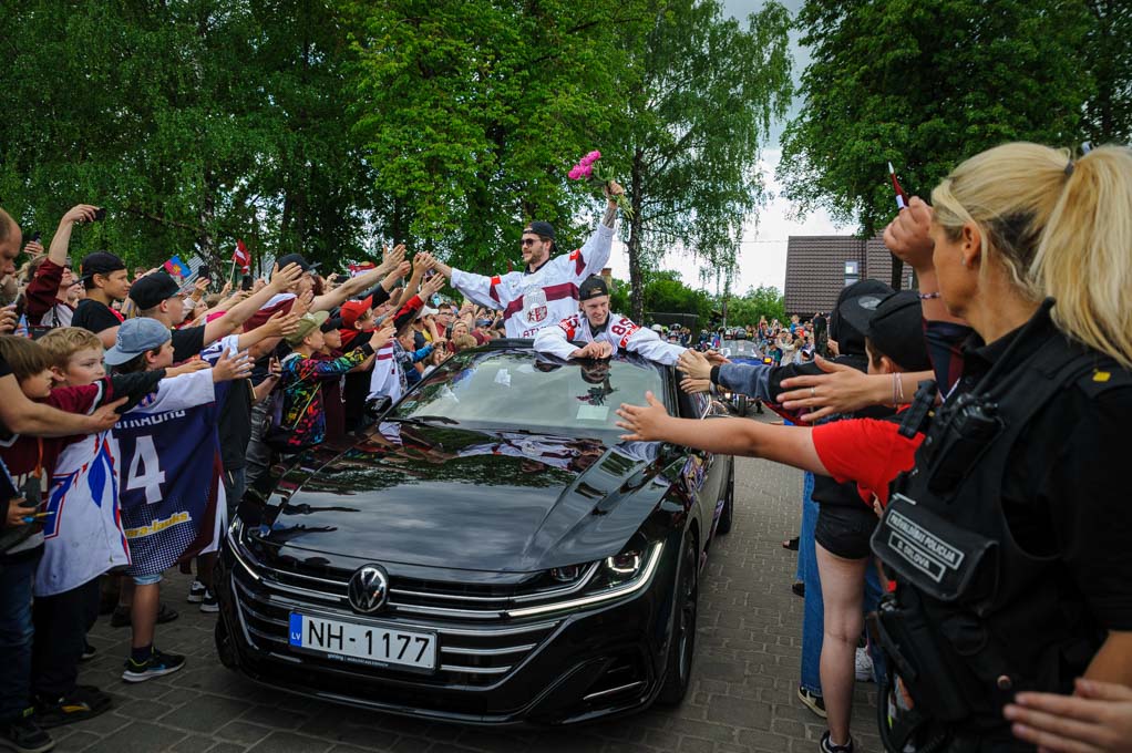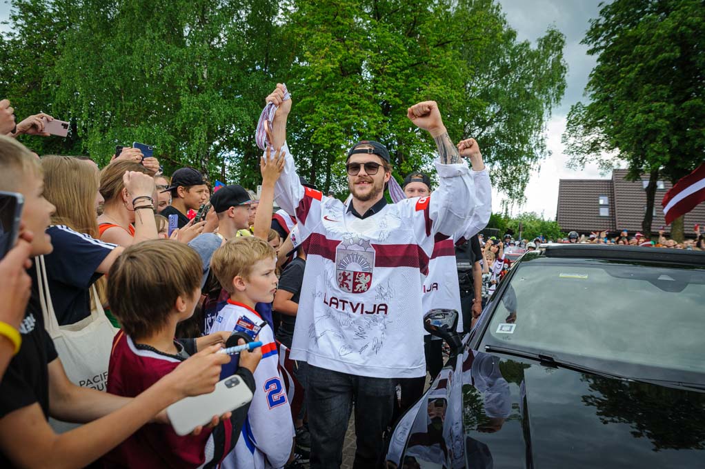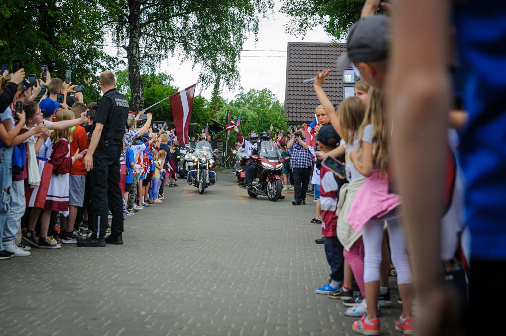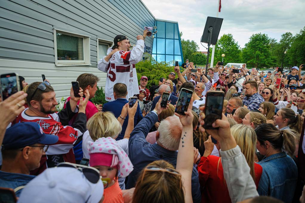 Pēcpusdienā daļa jelgavnieku kopā ar pārējo Latviju Rīgā pie Brīvības pieminekļa sagaidīja hokeja valstsvienību, atgriežoties no Pasaules čempionāta ar izcīnītām bronzas medaļām. Divus jelgavniekus no “Sapņu komandas 2023” – Renāru Krastenbergu un Danu Ločmeli, simtiem jelgavnieku vakarā sagaidīja pie Jelgavas ledus halles.