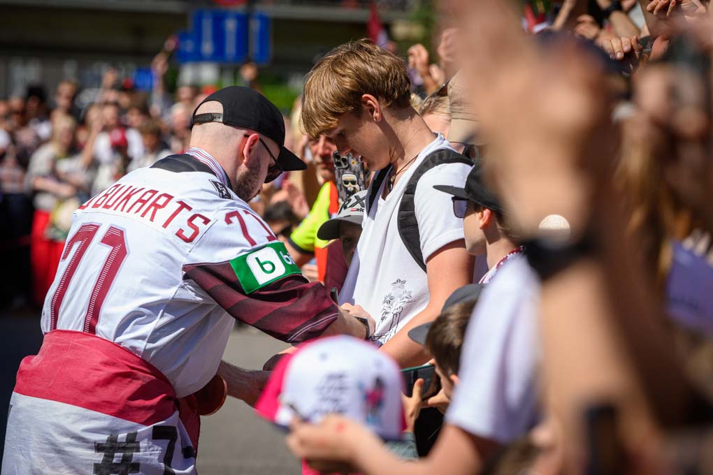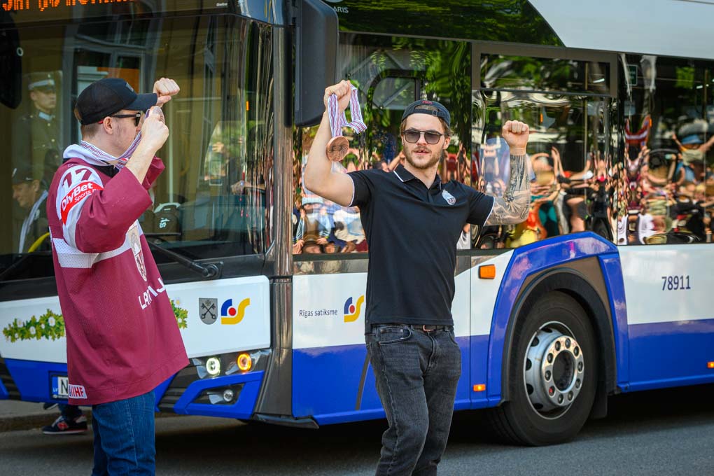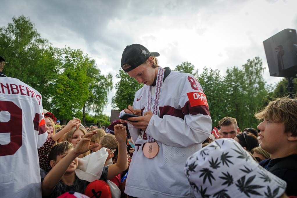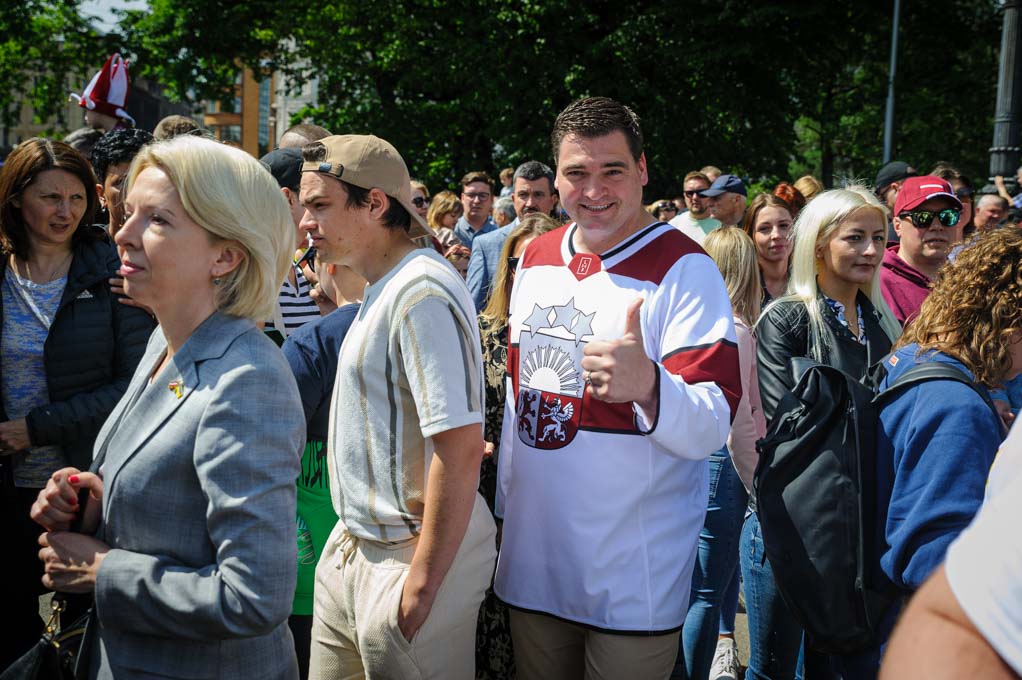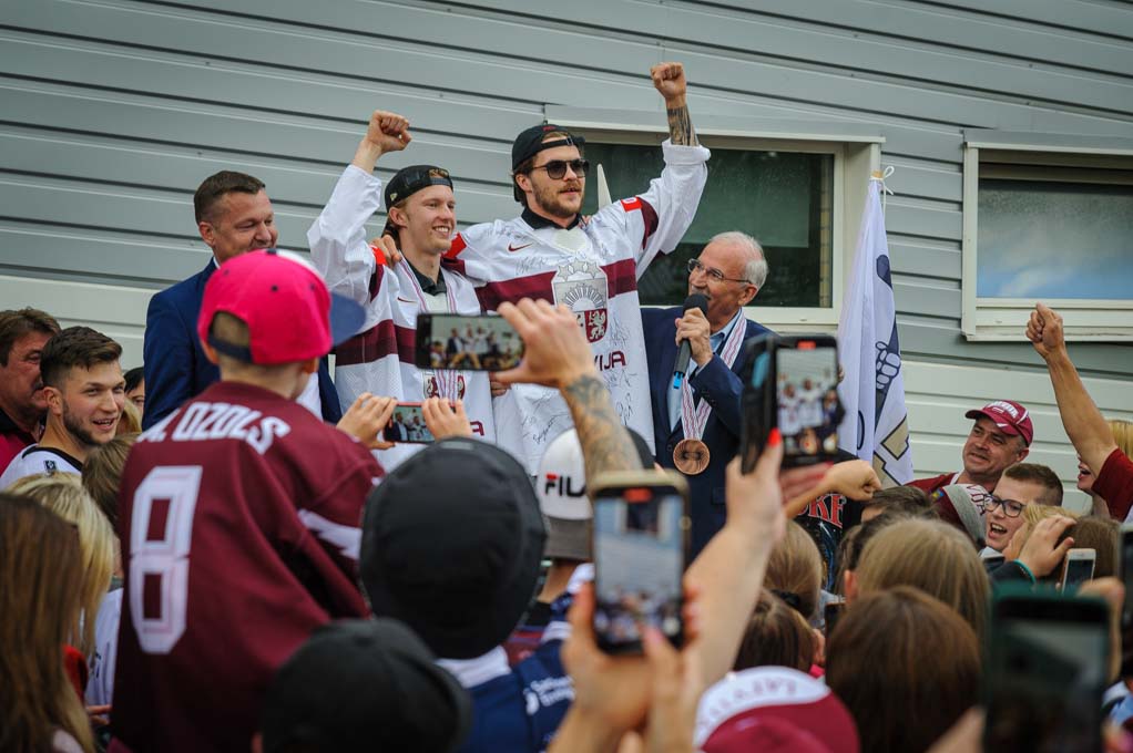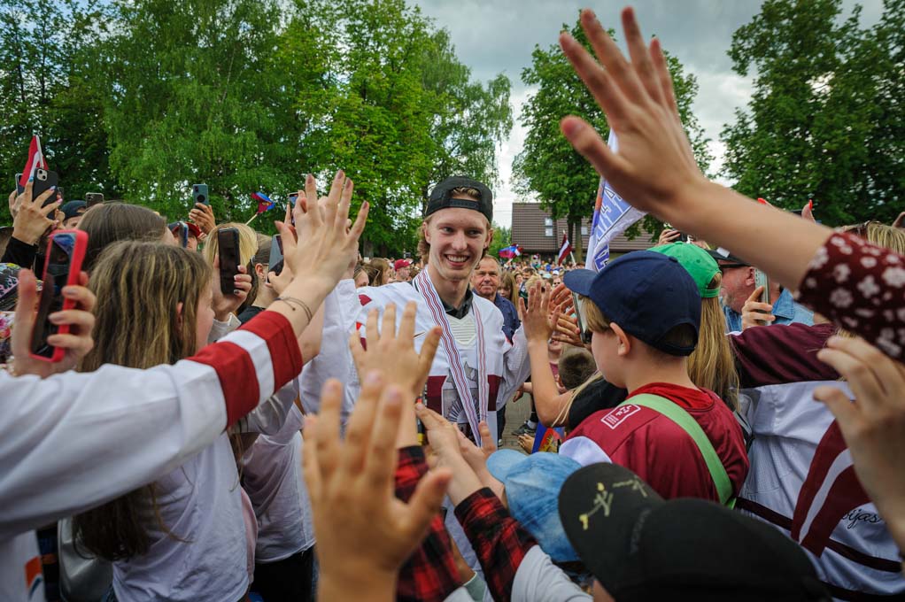Pēcpusdienā daļa jelgavnieku kopā ar pārējo Latviju Rīgā pie Brīvības pieminekļa sagaidīja hokeja valstsvienību, atgriežoties no Pasaules čempionāta ar izcīnītām bronzas medaļām. Divus jelgavniekus no “Sapņu komandas 2023” – Renāru Krastenbergu un Danu Ločmeli, simtiem jelgavnieku vakarā sagaidīja pie Jelgavas ledus halles.