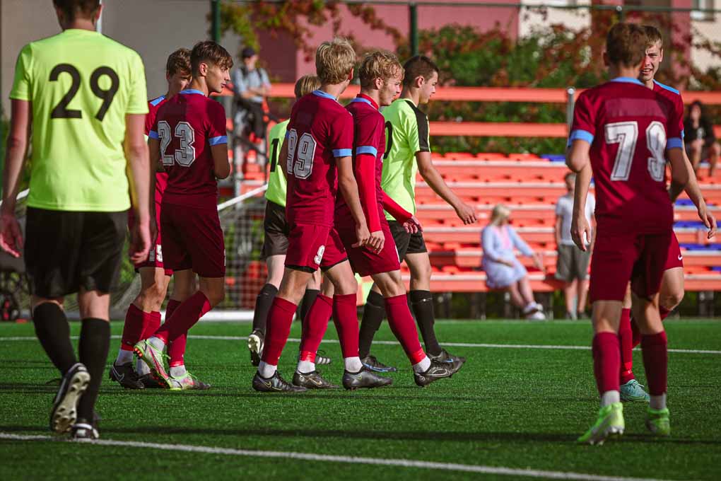 Divas minūtes vēlāk Adriāns Muižnieks ar galvu ieraidīja bumbu vārtos pēc centrējuma no labās malas – 6:0. Pārliecinošs rezultāts ļāva trenerim Nakano izdarīt visas spēlētāju maiņas, dodot iespēju uzspēlēt arī rezerves vārtsargam Matīsam Goldštremam, kurš nomainīja Artūru Štefenhagenu.