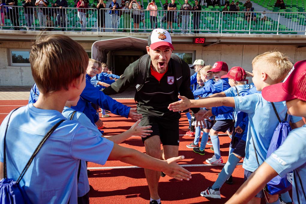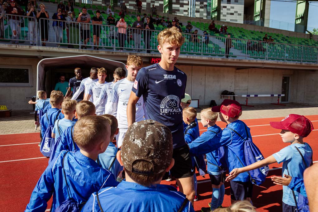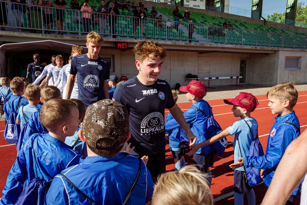 Kluba futbola skolas pirmklasnieki spēles pārtraukumā saņēma vērtīgas balvas un pavadīja spēlētājus uz laukuma, radot spožas un sirsnīgas emocijas abās komandās.