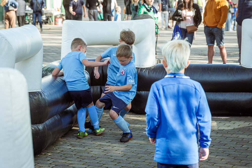 Pie Jāņa Lūša stadionā klubs bija organizējis piepūšamās atrakcijas ar futbola tematiku, kur bērni varēja ar prieku izmantoto savu nebeidzamo enerģiju.