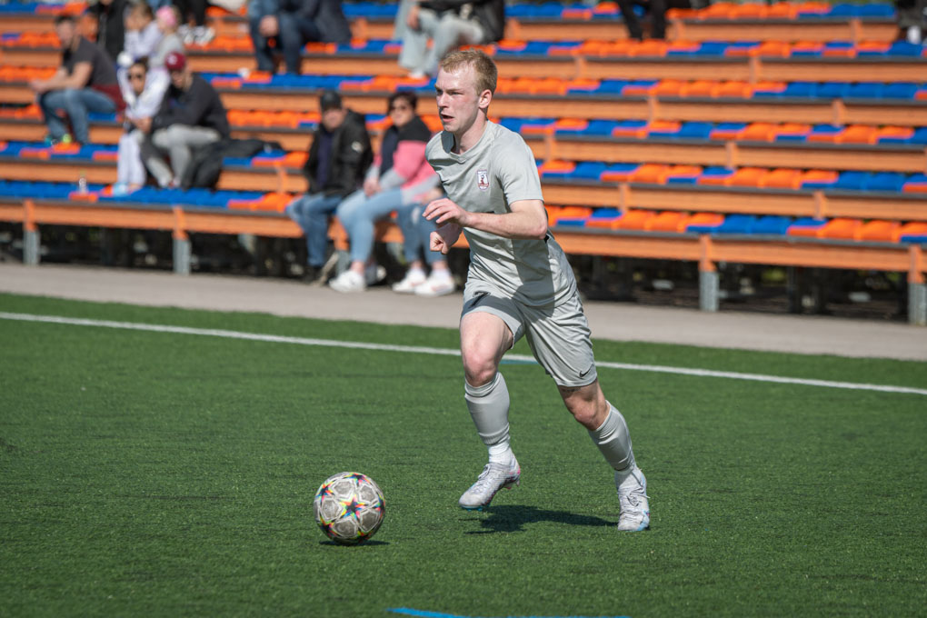 No pirmajām spēles minūtēm “FS Jelgava-2” aktīvi iesaistījās divcīņās ar pretinieku, kas nesa viņiem pārsvaru bumbas kontrolē. Jelgavnieki savu pārsvaru izmantoja vārtu gūšanas momentu veidošanā un jau 23. minūtē Kristers Pantelejevs atklāja spēles rezultātus – 1:0.