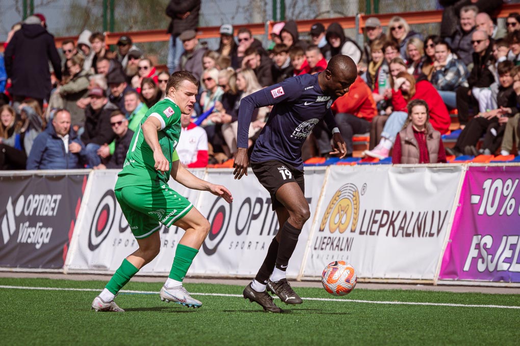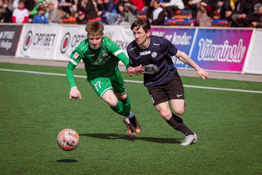 Būdams līderu lomā “FS Jelgava” ātri pārņēma spēles kontroli savās rokās un izveidoja ātru uzbrukumu, kas noslēdzās ar ātri gūtiem vārtiem. Spēles 1. minūtē nigērietis Viktors Osuagvu izrāvās uz priekšu caur kreiso malu. Viņa uzbrukumu turpināja Ralfs Maslovs, kurš caur Oskaru Rubeni nogādāja bumbu uz soda laukuma vidu, kur to vārtos raidīja Danila Patijčuks – 1:0.