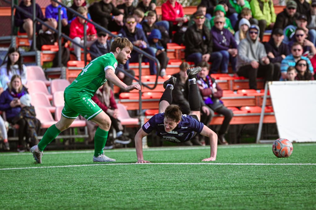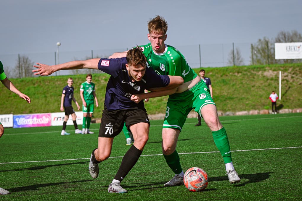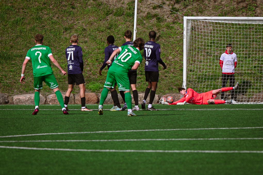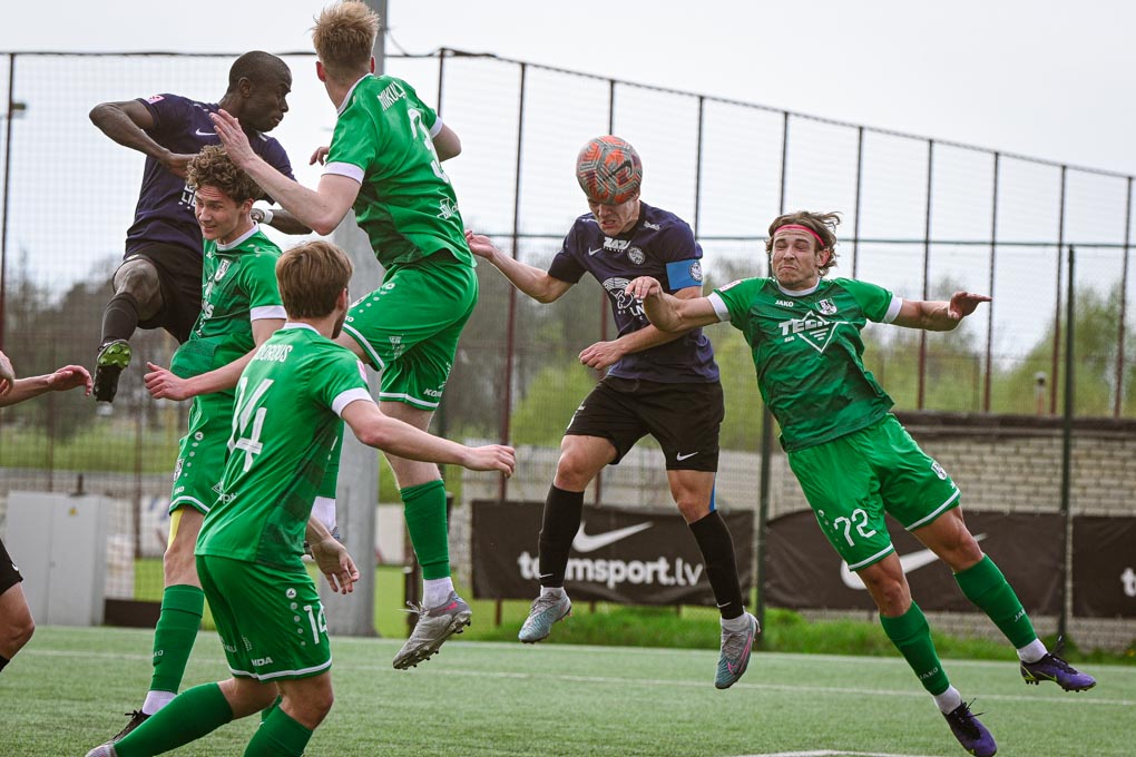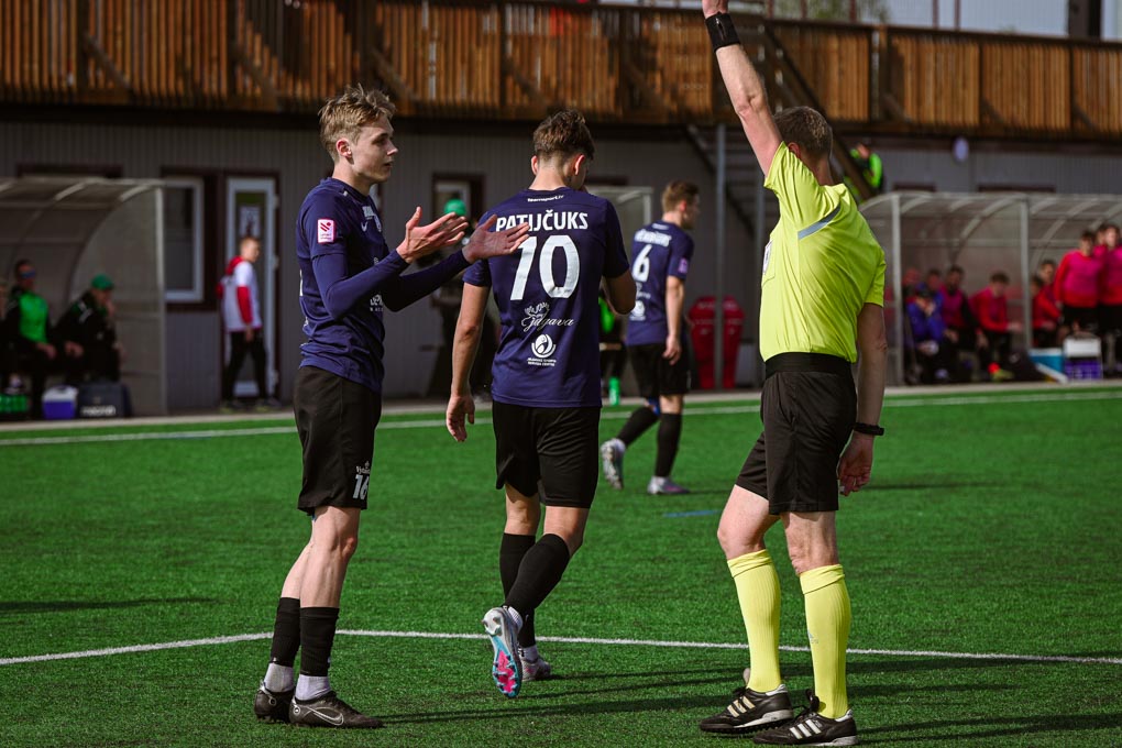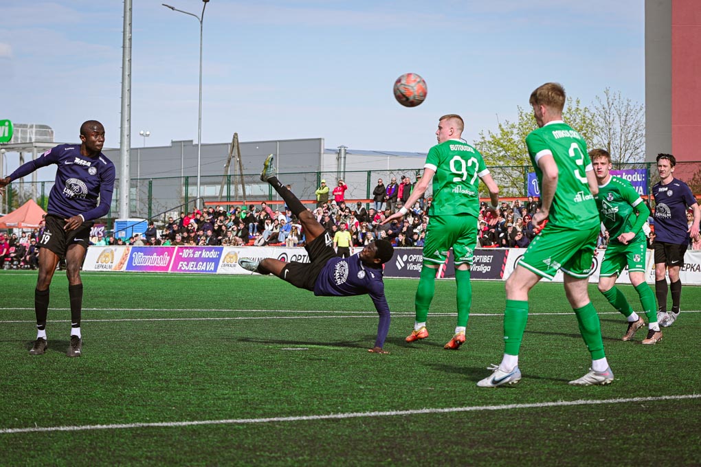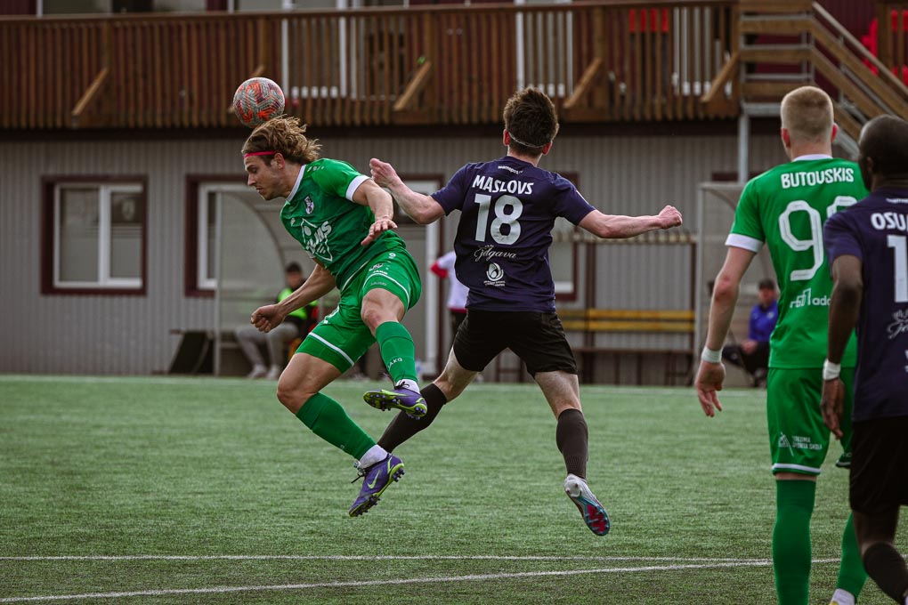84. minūtē viesu laukuma pusē no labās malas brīvsitienu izpildīja Ralfs Maslovs. Bumba pārlidoja pāri vairākumam spēlētāju, kuri pulcējās pie vārtsarga laukuma. Kad jau bija radījusies sajūta, ka neviens nespēs tai pieskarties, aizsargs Dāvis Vējkrīgers ar galvas sitienu to raidīja vārtu tālajā malā, izlīdzinot rezultātu – 2:2.