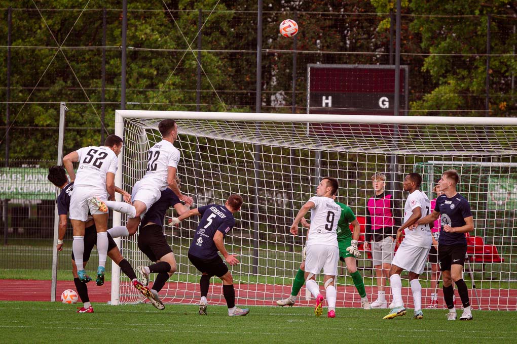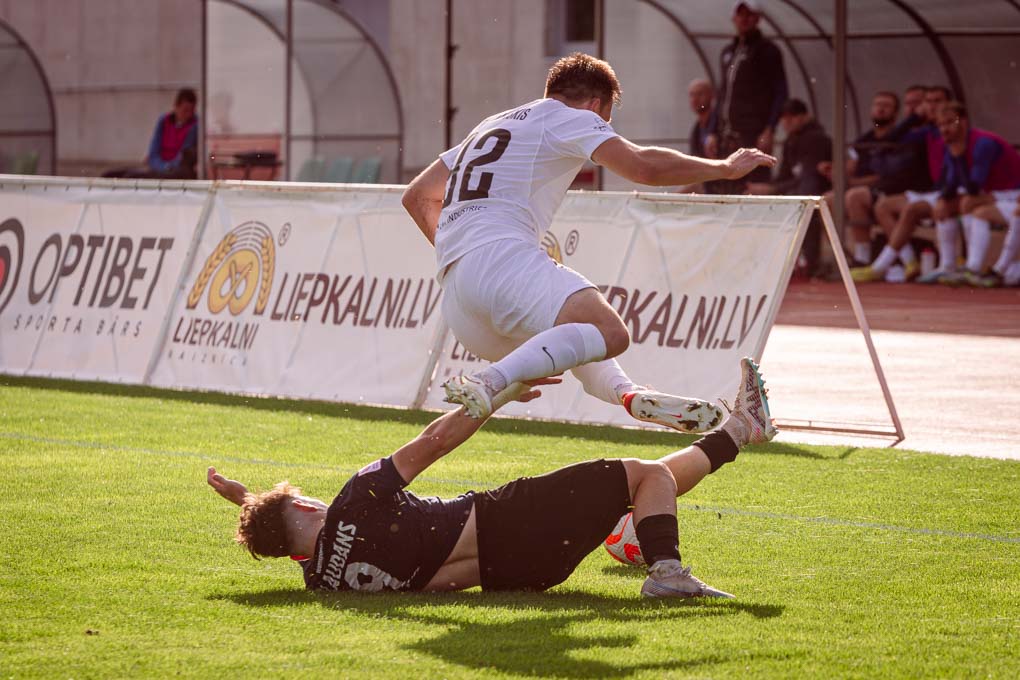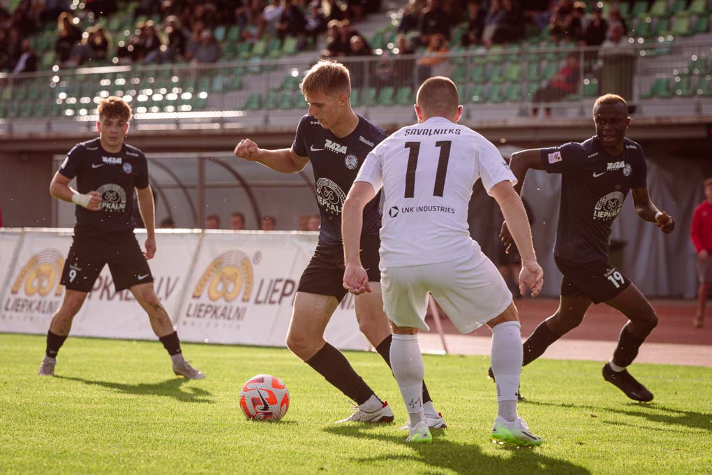 “FS Jelgava” futbolisti turpināja mēģinājumus uzbrukt uz viesu vārtiem, bet puslaika gaitā bumbas kontrole vairāk pārgāja pie “RFS” un atspēlēties šajā nogrieznī neizdevās.