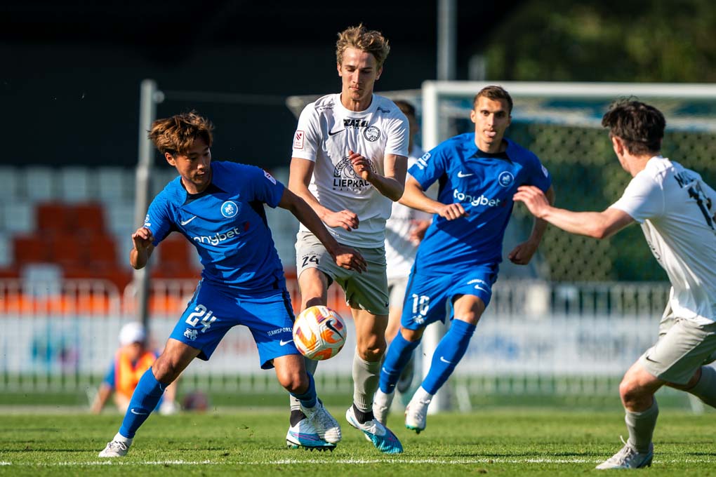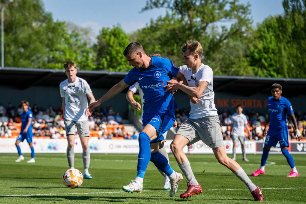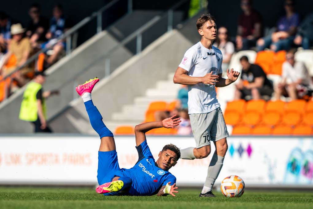 28. minūtē Ralfs Maslovs atkārtoja savu ātru uzbrukumu caur kreiso malu un raidīja bumbu vārtu tālā stūra virzienā. Diemžēl bumba aizripoja garām un arī partneri nepaspēja pie tās, lai ieraidītu vārtos.