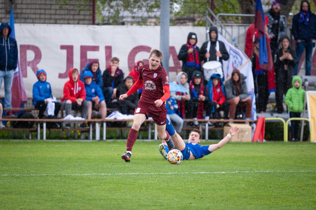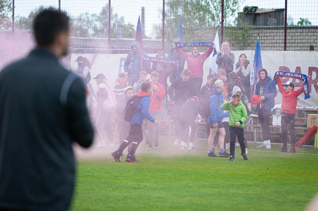 Otrajā puslaikā “FS Jelgava” kaut kā mazināja savu spiedienu. Vārtu gūšanas momenti bija, bet pārsvarā bumba lidoja garām vārtiem. Varētu domāt, ka pa iemeslu tam bija spēcīgs lietus, bet “FS Jelgava” kapteinis Andris Deklavs skaidroja, ka slapjš laukumus komandai pat nāk par labu, jo viņi uz tāda parasti trenējas. Viņš uzskata, ka intensitāte drīzāk mazinājās psiholoģisko apsvērumu dēļ – komanda bija vadībā un spēlēja vairākumā.