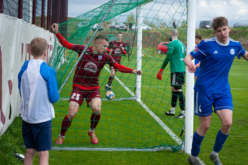 Spēles pamatlaika pēdējā minūtē “FS Jelgava” spēlētāji ar pāris piespēlēm nonāca pie pretinieku vārtiem un pēc Mārča Peilāna piespēles gar vārtu priekšu, bumbu vārtos raidīja Ričards Jirgensons – 5:0.