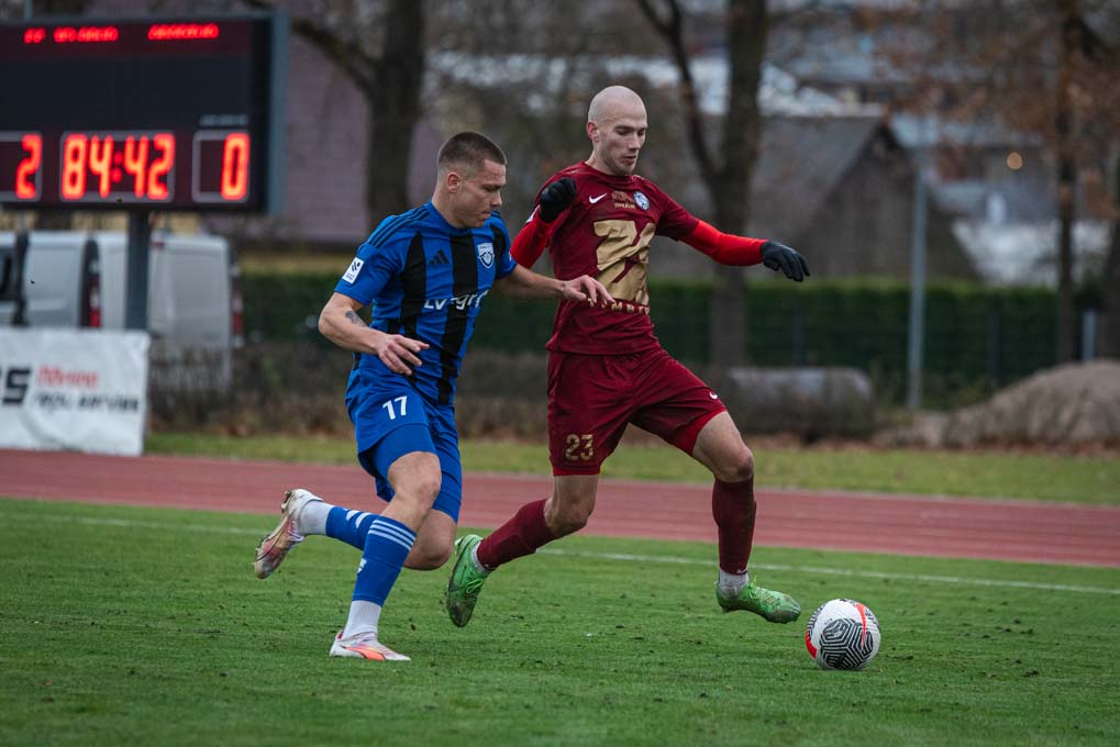 “FS Jelgava”: 16 Toms Leitis (G), 20 Yehor Glushach, 28 Andris Deklavs, 19 Armands Pētersons (C) (11 Dāvis Mārcis Valmiers 63′), 4 Gļebs Kačanovs (18 Ralfs Maslovs 46′), 23 Gļebs Kļuškins, 31 Markuss Ivanovs (8 Ralfs Šitjakovs 63′), 70 Artūrs Janovskis (7 Mārcis Peilāns 46′), 99 Rihards Bečers, 22 Valters Purs, 10 Agris Glaudāns (14 Ādams Dreimanis 73′); rezervisti: 1 Vjačeslavs Kudrjavcevs (G), 6 Yasuhiro Hanada, 30 Mārcis Šusts, 15 Kristers Pantelejevs; galvenais treneris: Anatolii Sidenko.