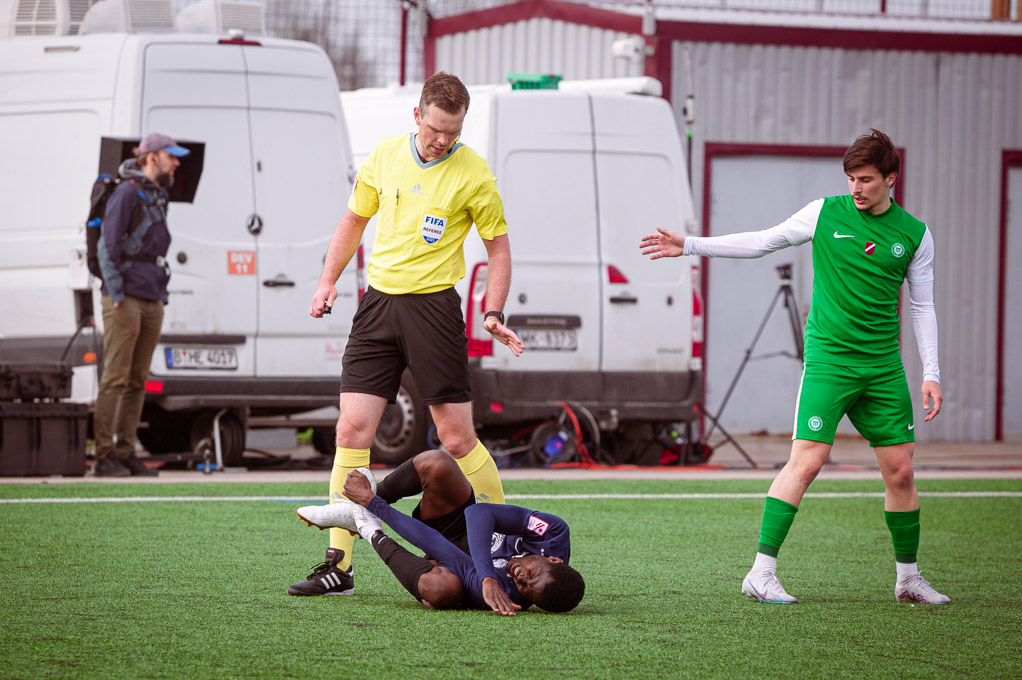 43. minūtē caur kreiso malo dziļi “Mettas” laukuma pusē aizskrēja pussargs Ralfs Maslovs. Viņa centrējums gandrīz no laukuma beigu līnijas, nogādāja bumbu soda laukumā pie kamerūnieša Žana Mbassi Zambgalas. Viņš spēcīgi sita pa bumbu, tā atleca no zemes un pārlidoja pāri “Mettas” vārtsargam Jānim Bekam un piezemējās aiz vārtu līnijas – 2:1.