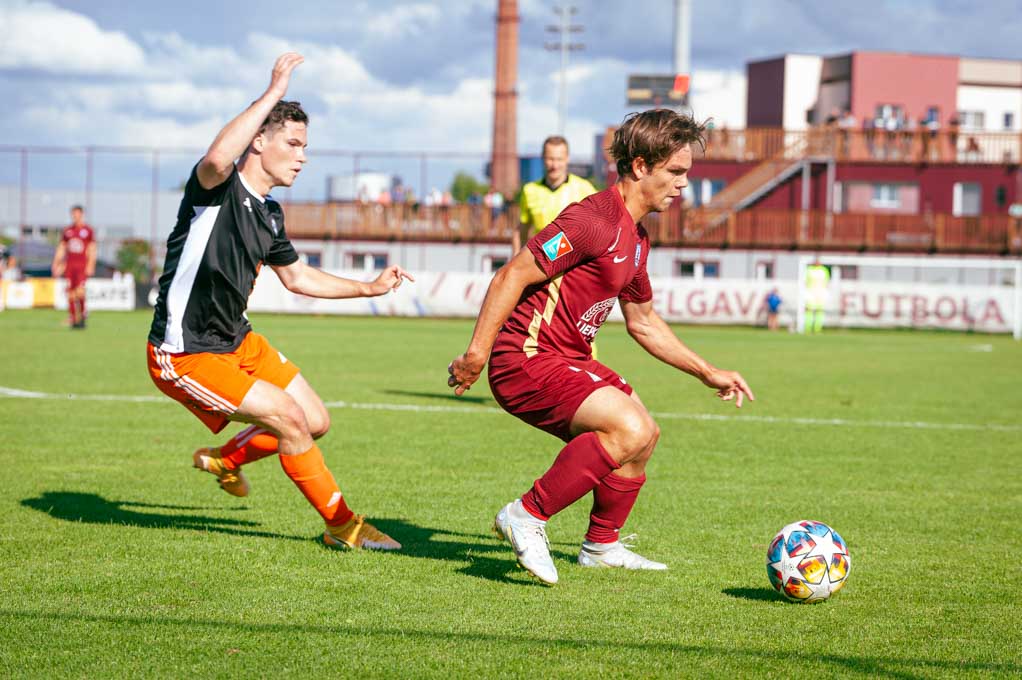 Jelgavniekiem pārsvaru bumbas kontrolē izdevās panākt jau ap desmito spēles minūti, bet ar vārtu guvumu neveicās tik ātri. Laukuma saimnieki veidoja dažādas izspēles, bet noslēgumā vai nu sita virsū vārtsargam, vai nu garām vārtiem.