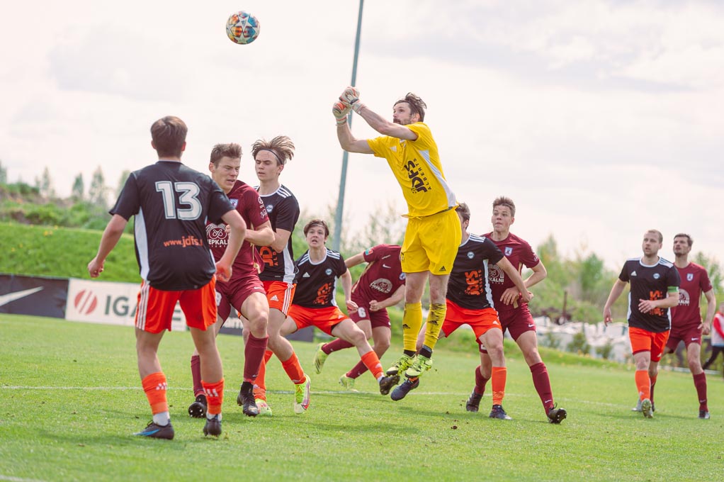 Otrajā puslaikā cīņa kļuvusi krietni atklātāka. “FS Jelgava” biežāk nonāca pie pretinieku vārtiem un veidoja vārtu gūšanas momentus, kurus vairākas reizes skatāmos lēcienos neitralizēja “JDFS Alberts” pieredzes bagātais vārtsargs Germans Māliņš.
