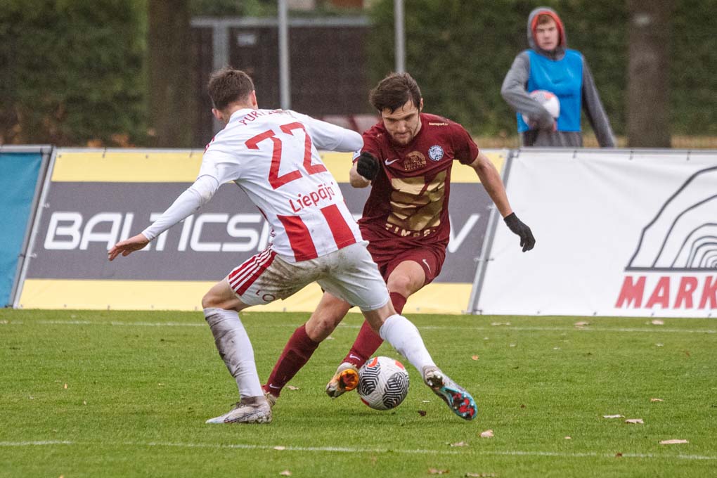 "FS Jelgava" un "FK Liepāja" aizraujošā cīņā nospēlē neizšķirtu spēli (FOTO, VIDEO)