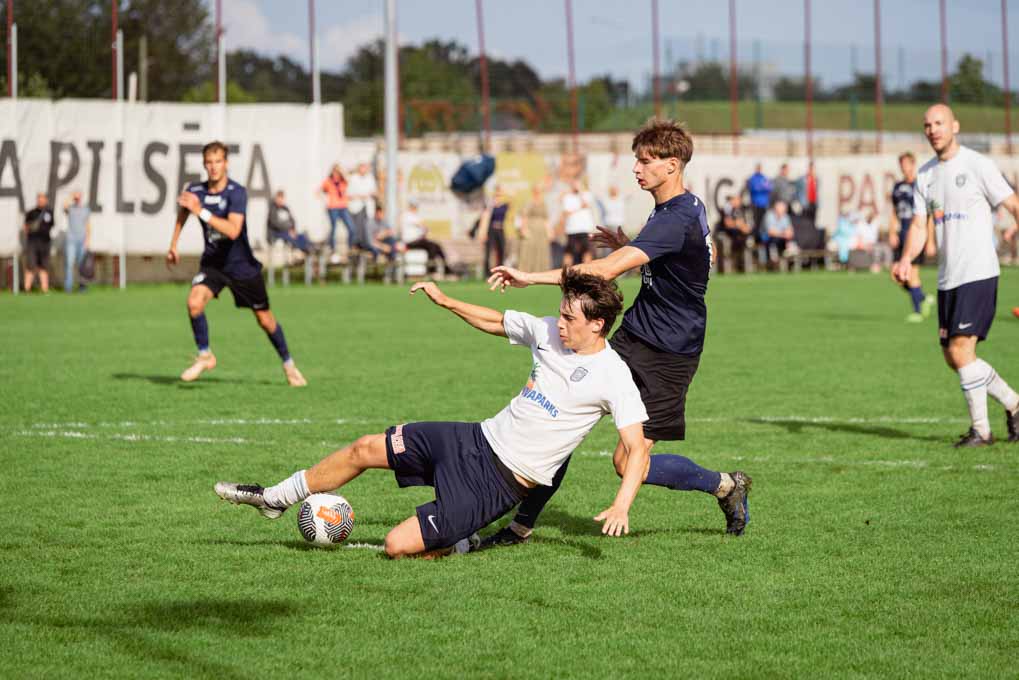 Otrajā puslaikā laikapstākļu radītie apstākļi – smagā bumba un izmirkušais laukums – būtiski ietekmēja spēles tempu un precizitāti. Lai arī “FS Jelgava-2” turpināja kontrolēt notikumus laukumā, ātrums bija mazāks un sitienu precizitāte kritās. Par to liecina arī Artūra Janovska divi trāpījumi pa vārtu stabu. Tomēr jelgavniekiem izdevās gūt vēl vienus vārtus, noslēdzot spēli ar graujošo 6:0.