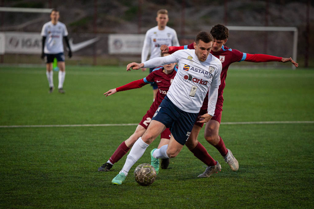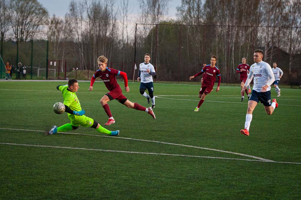 Abām komandām izdevās praktiski vienāds skaits ar vārtu gūšanas momentiem. “JFC Jelgava” vairāk sita pāri vārtiem, kamēr “FS Jelgava-2” neizdevās apmānīt vārtsargu Kasparu Sondoru – 0:0. Bezvārtu neizšķirtais rezultāts neapmierināja nevienu no komandām, bet tās tomēr tika pie saviem pirmajiem punktiem.