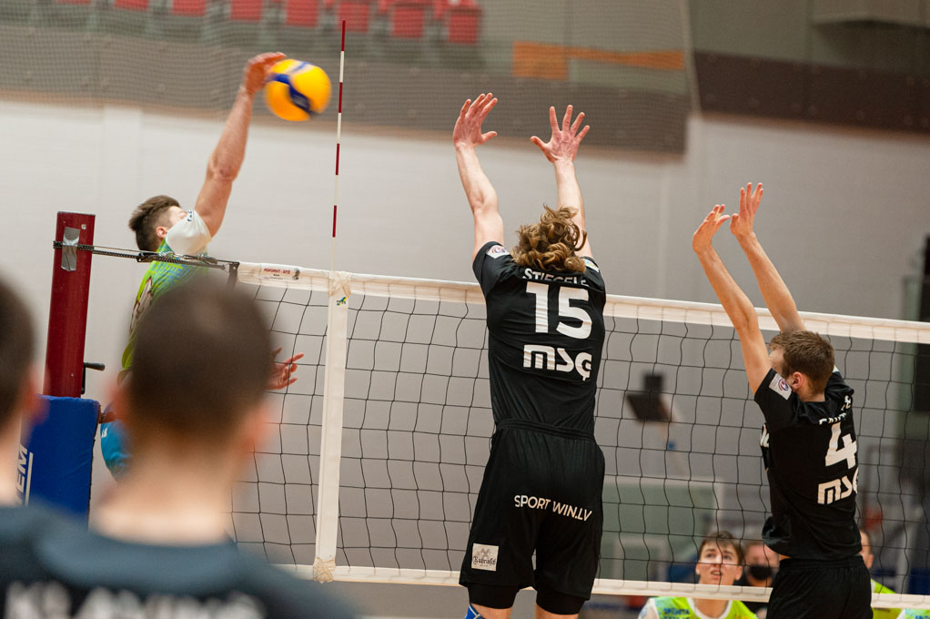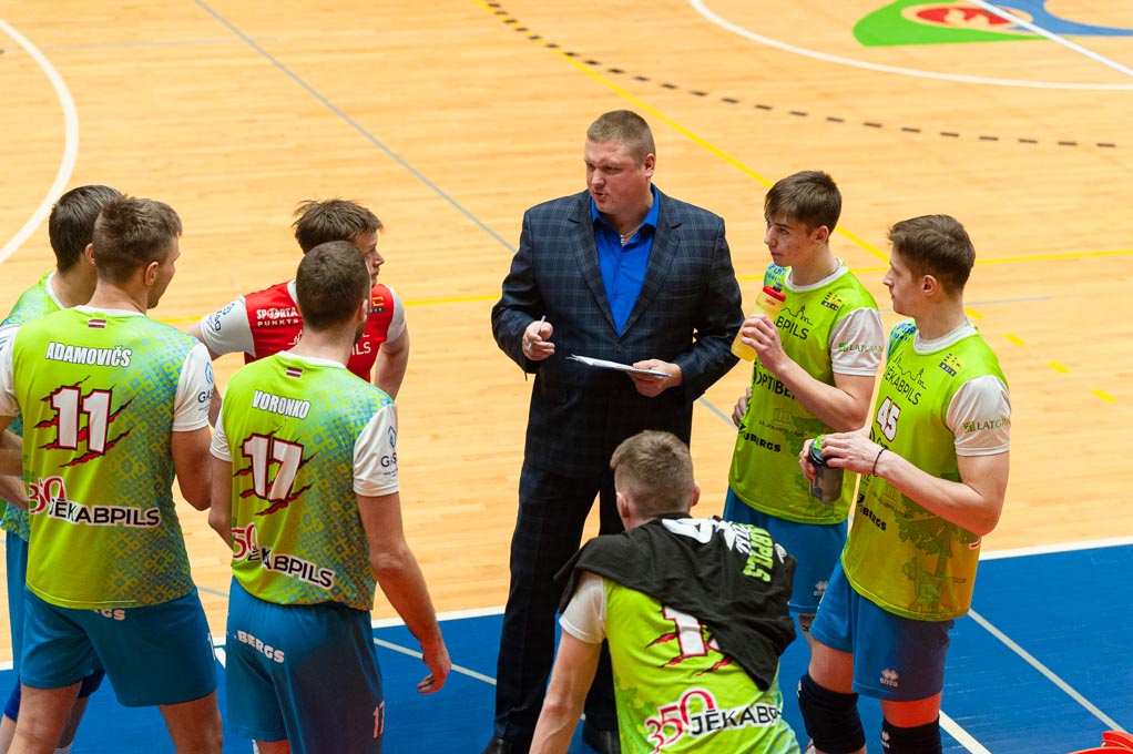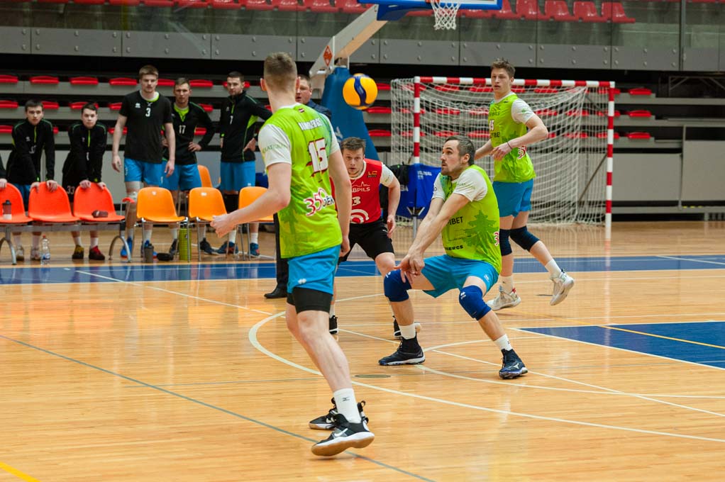 Pēc pirmā mača trešdienas vakarā izbraukumā, kur tika zaudēts visai pārliecinoši, šodienas spēli mājinieki sāka krietni vien apņēmīgāk, pirmajā setā pat šķietami pārsteidzot pretiniekus un noslēdzot to ar 25:22 savā labā. Turpinājumā gan čempionvienība vairs paviršības nepieļāva, nākamajos setos atstājot Murjāņu ģimnāzistus pie 13, 18 un 15 punktiem.