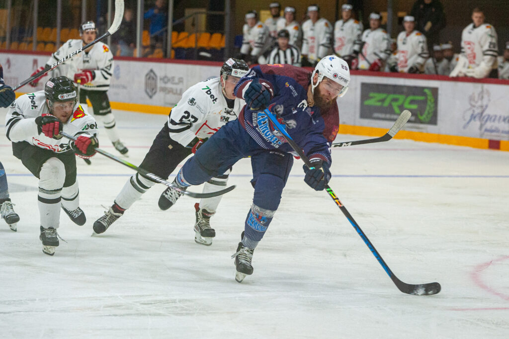 Otrās trešdaļas izskaņā jelgavnieki palika mazākumā un to “7BET-Hockey Punks” labā izmantoja kanādietis Samuels Blanšē – 6:2.
