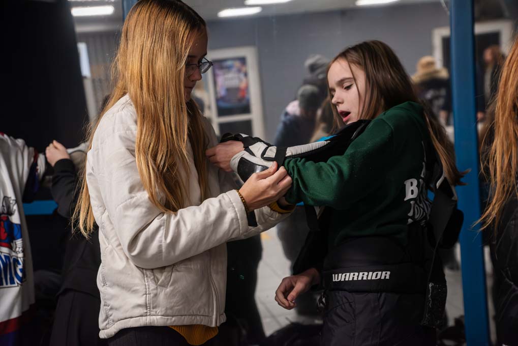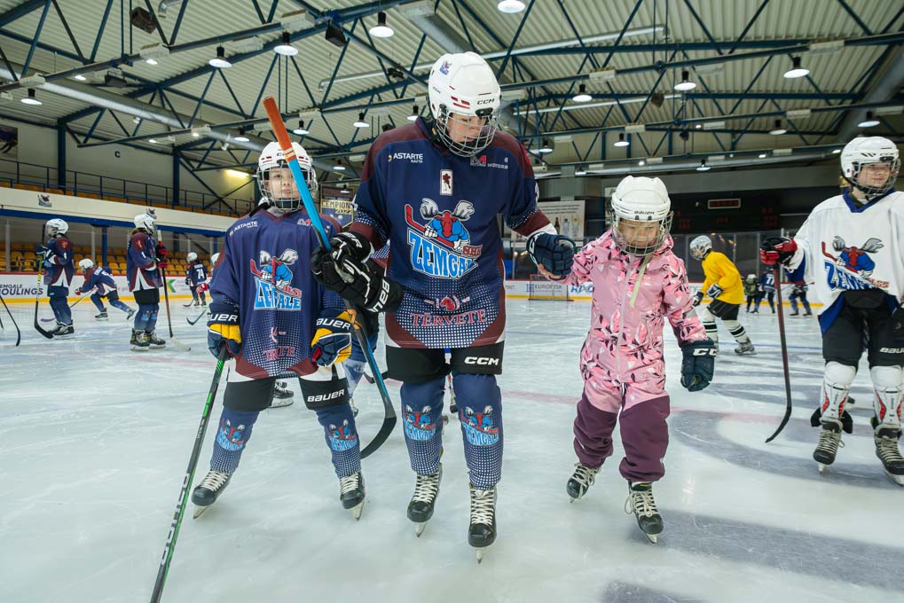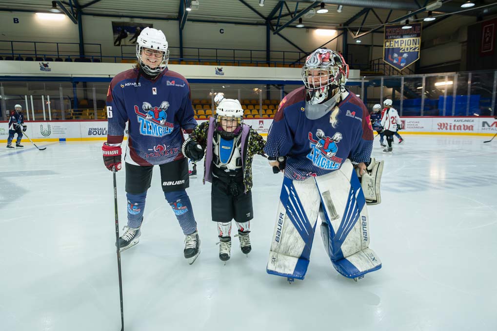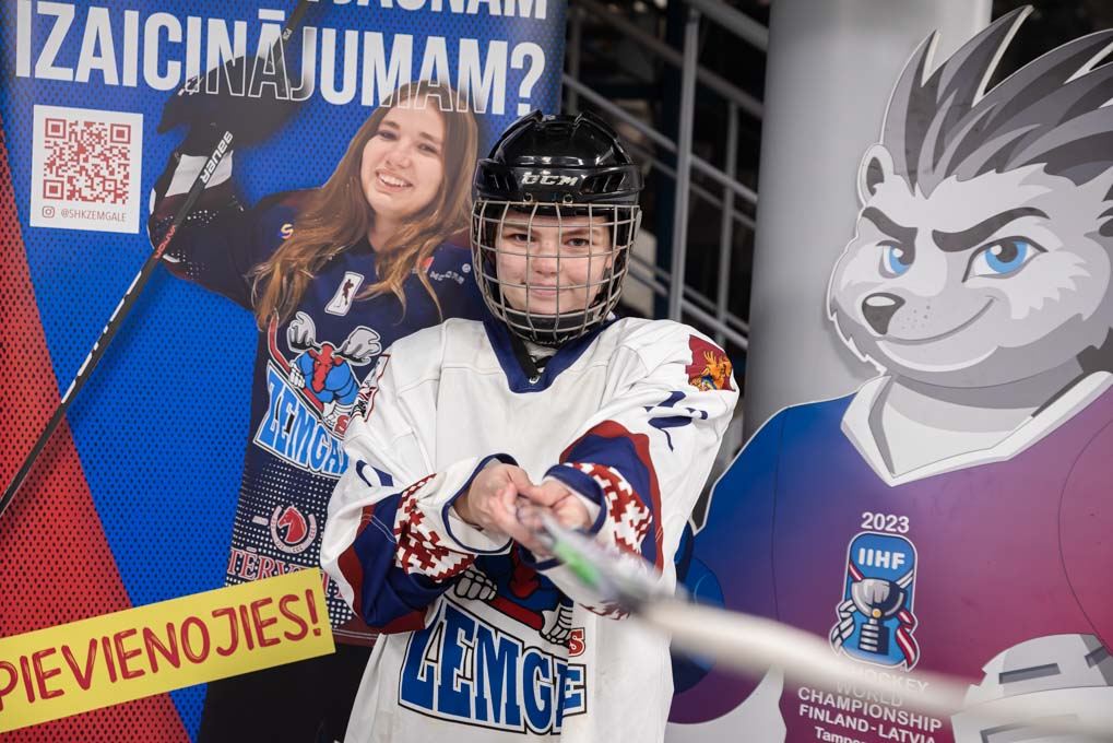 - Halles vestibilā bija iespēja pielaikot īstu hokeja formu, doties ekskursijā pa Jelgavas Ledus halli, satikt SHK “Zemgale” trenerus un spēlētājas, kā arī iepazīt Jelgavas Ledus sporta skolas meitenes, kuras jau aktīvi spēlē hokeju.