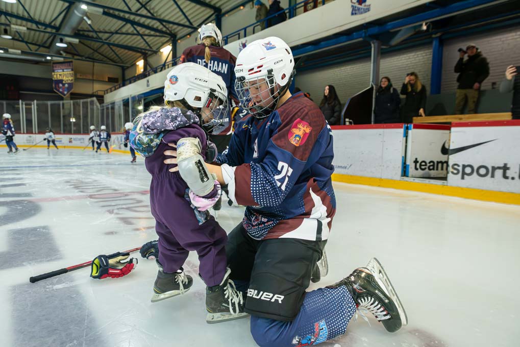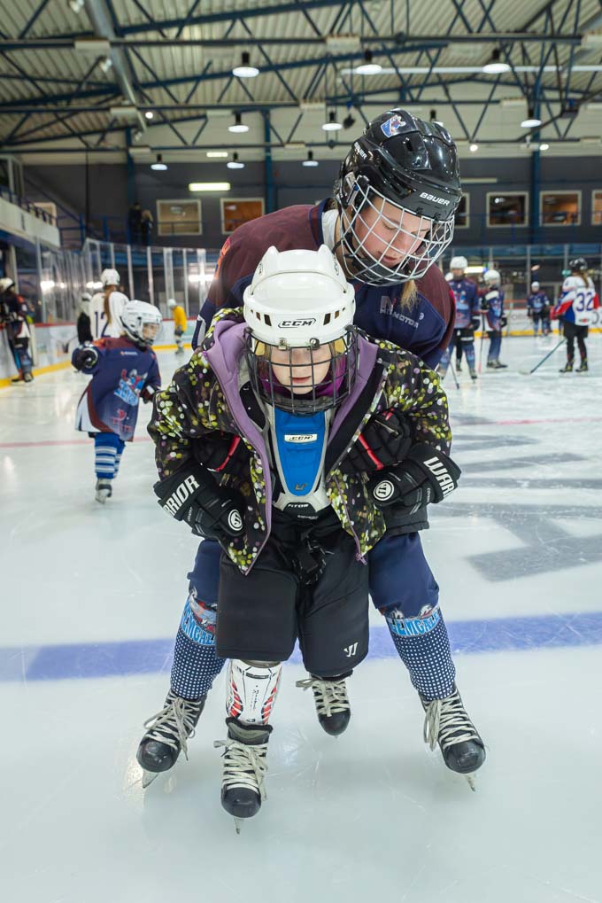 - Vakara kulminācijā dalībnieces uzkāpa uz ledus un piedalījās atklātajā hokeja treniņā, kurā varēja izmēģināt pirmos soļus uz ledus un gūt savus pirmos vārtus.