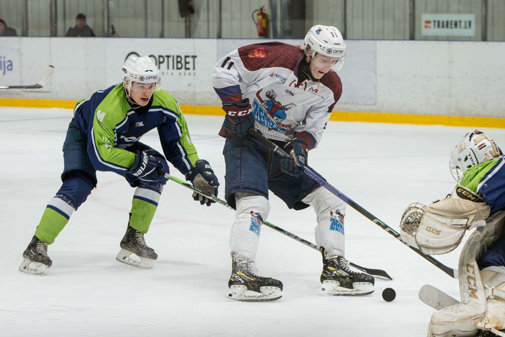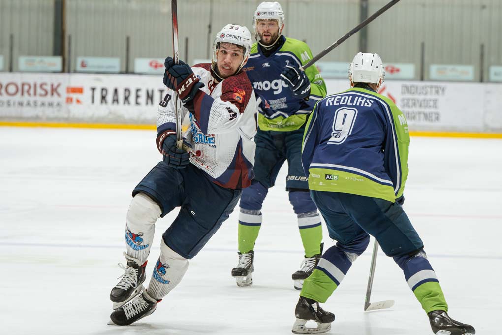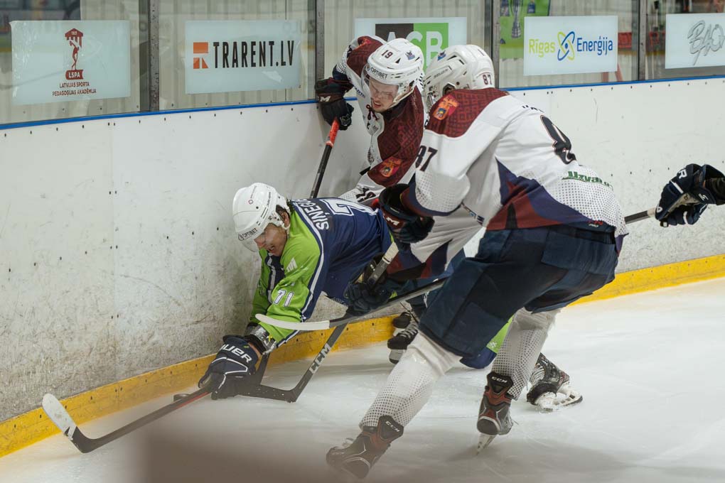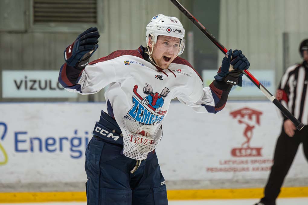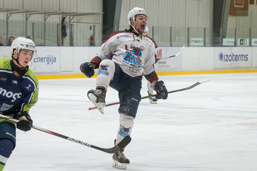 Mazāk nekā pēc divām minūtēm “Zemģale/LBTU” uzbrucējs Ričards Bernhards laboja aizsarga Silvera Uvja Lazarenoka raidīto ripu un izlīdzināju rezultātu – 1:1.