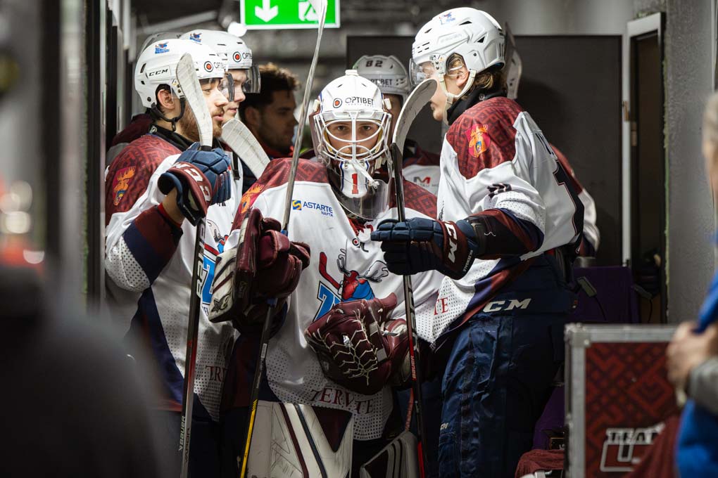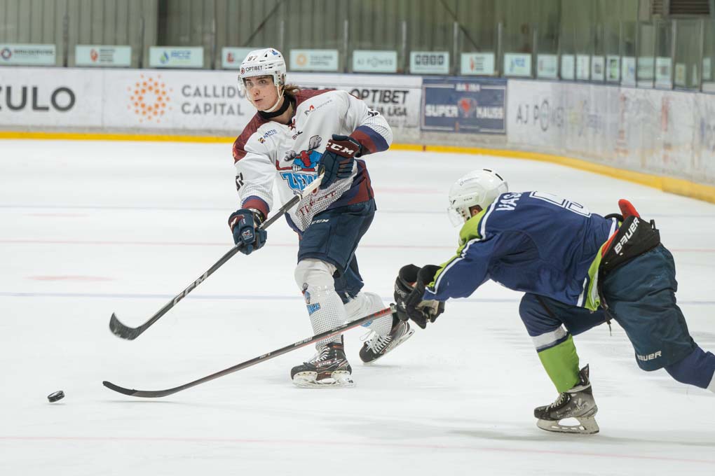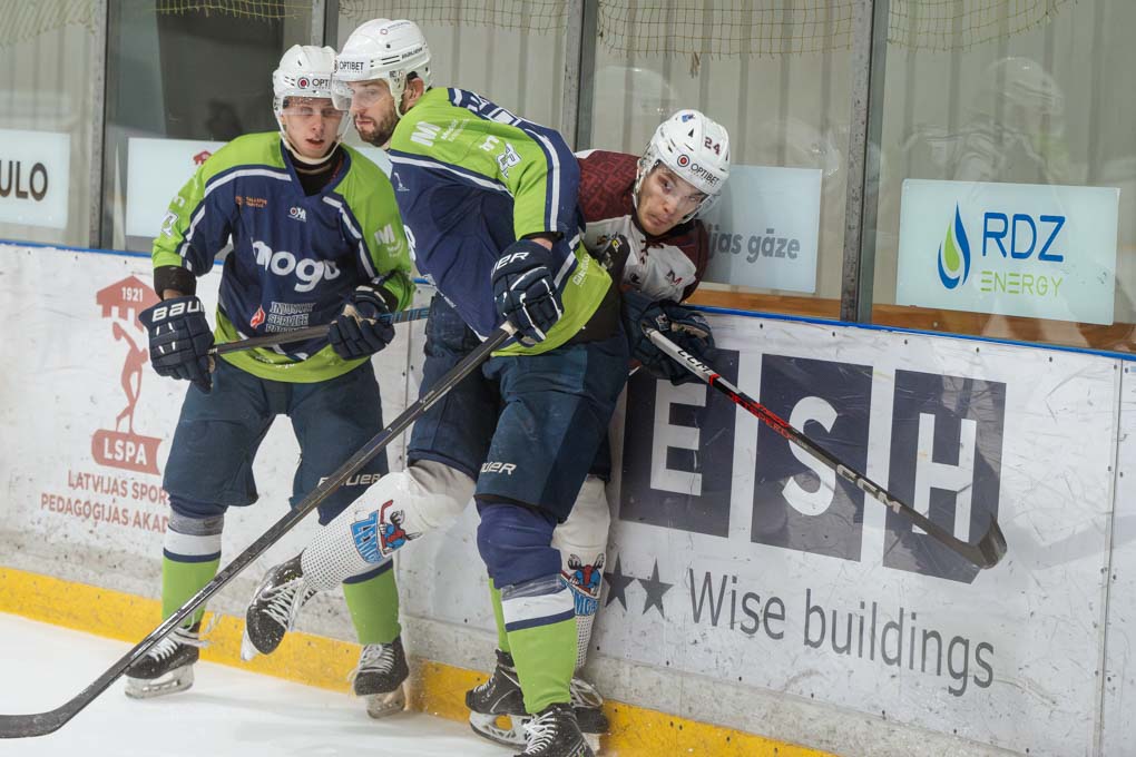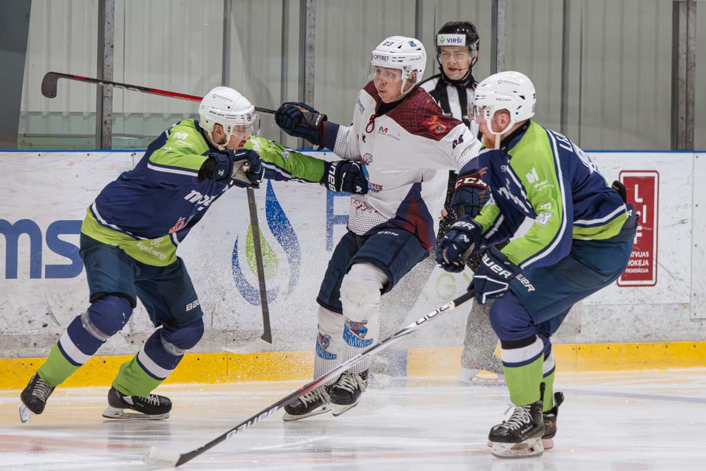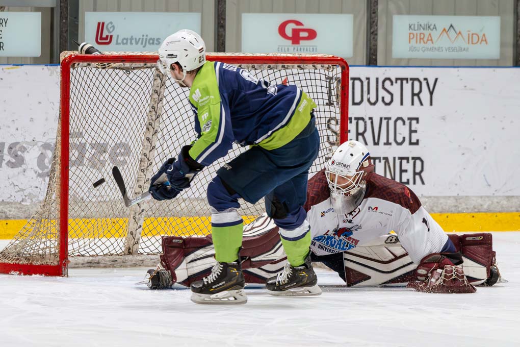 Mazāk nekā pēc divām minūtēm “Zemģale/LBTU” uzbrucējs Ričards Bernhards laboja aizsarga Silvera Uvja Lazarenoka raidīto ripu un izlīdzināju rezultātu – 1:1.