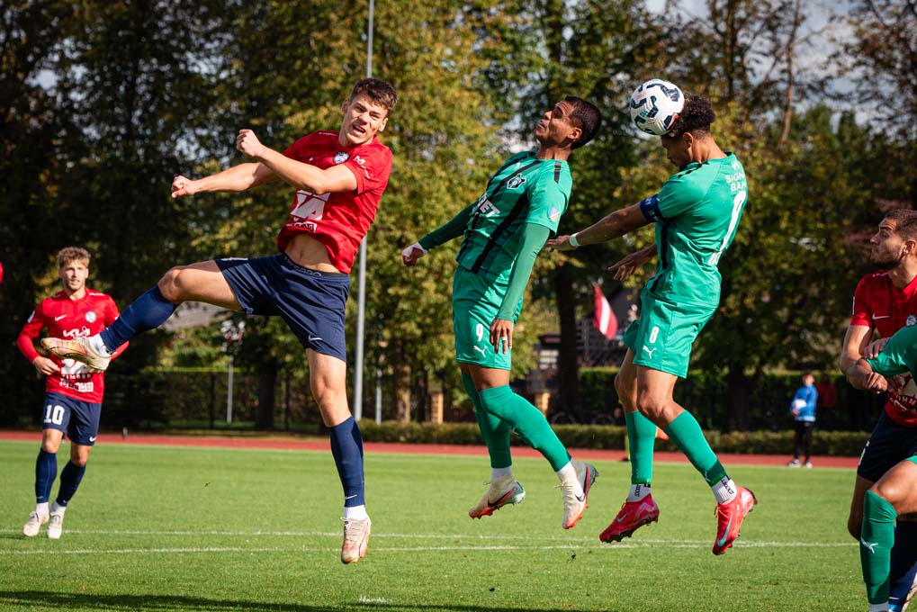 Futbola komanda “FS Jelgava” sestdien savā laukumā, Zemgales Olimpiskā centra stadionā, demonstrēja apsveicamu neatlaidību un cīnījās neizšķirti 1:1 (0:1; 1:0) ar vienu no turnīra tabulas augšgala komandām FK “Auda”. Ilgu laiku atrodoties iedzinējos, jelgavniekiem izdevās atspēlēties spēles izskaņā, pateicoties Kristera Penkevica fantastiskam tālšāvienam, kas komandai nodrošināja vērtīgu punktu turnīra tabulā.