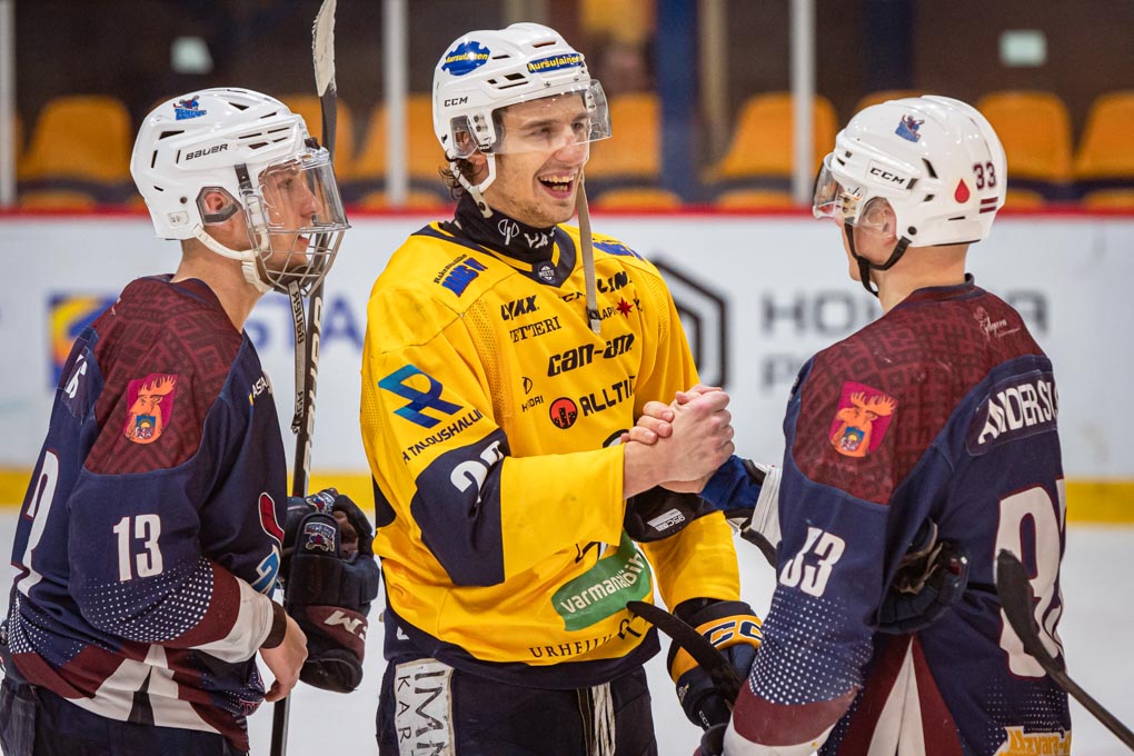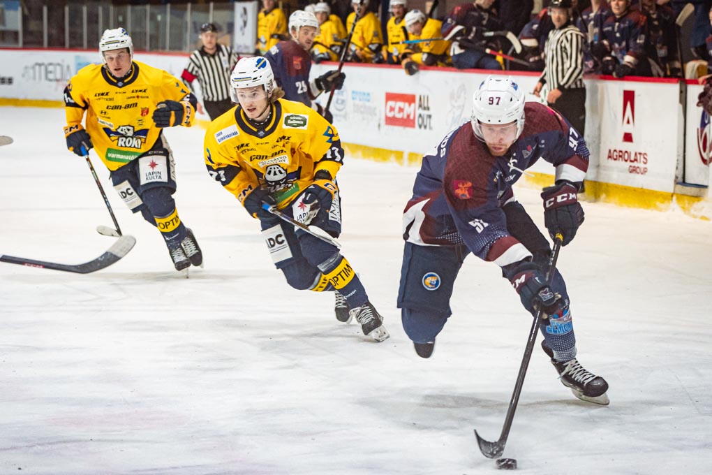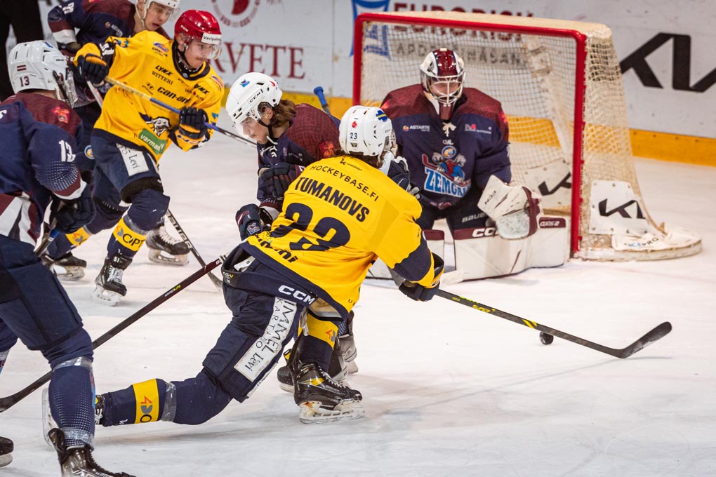 Vārtu guvēji: 09:54 Valtteri Suni (Kaarela, Peltola); 13:28 Anton Sikorski (Ulkuniemi, Tumanovs); 29:42 Miks Tumanovs (Huttunen, Holopainen); 47:31 Arttu Rämö (Alanen) – mazākumā; 48:48 Kristaps Roķis (Goršanovs) – lielā vairākuma; 50:25 Jere-Matias Alanen (Heino, Rämö) – vairākumā; 55:00 Heikki Huttunen (Tiihonen, Tumanovs) – vairākums; Joshua Tetlow (Manninen).