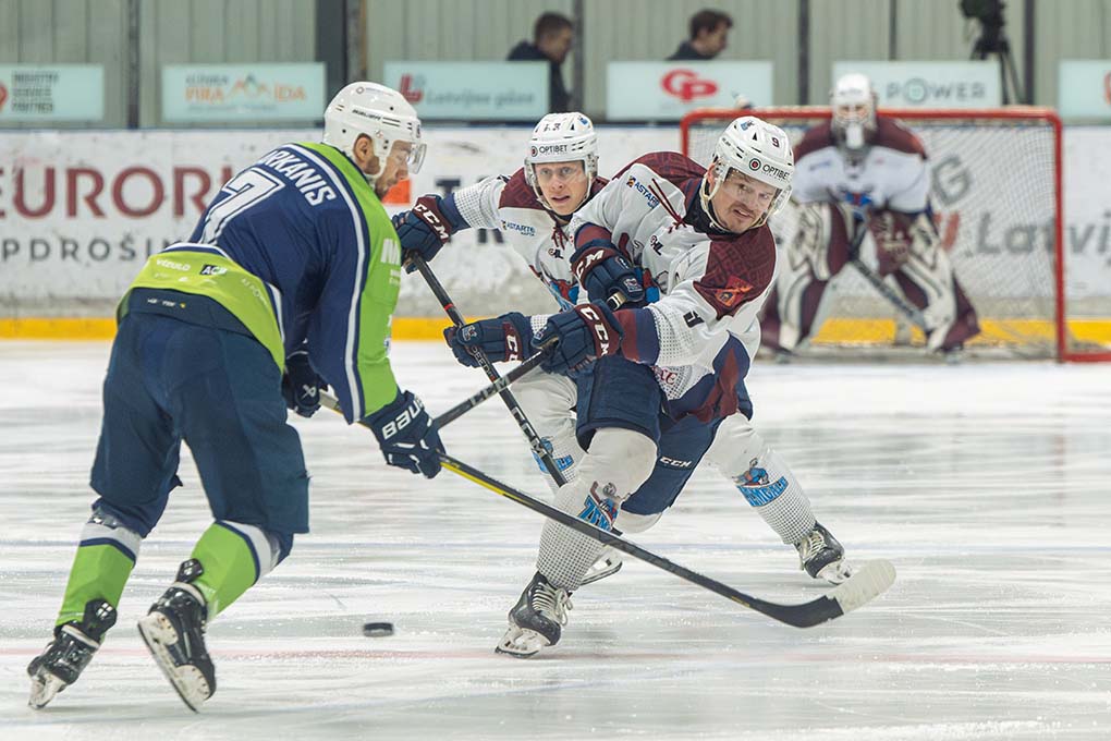 Pirmās trešdaļas izskaņā jelgavnieki nomainīja vārtsargu Akselu Ozolu pret Mariusu Bajarunu-Galēju, jo jaunajam vārtsargam bija nepieciešams sakārtot ekipējumu. “Zemgale/LBTU” aizsargi neveiksmīgi nospēlēja savā aizsardzības zonā un tas ļāva rīdzinieku uzbrucējam Elvim Želubovskim ieraidīt pirmo sezonu ripu Mariusa sargātos vārtos – 0:1. Uzreiz pēc šīs epizodes Aksels atgriezās vārtos.