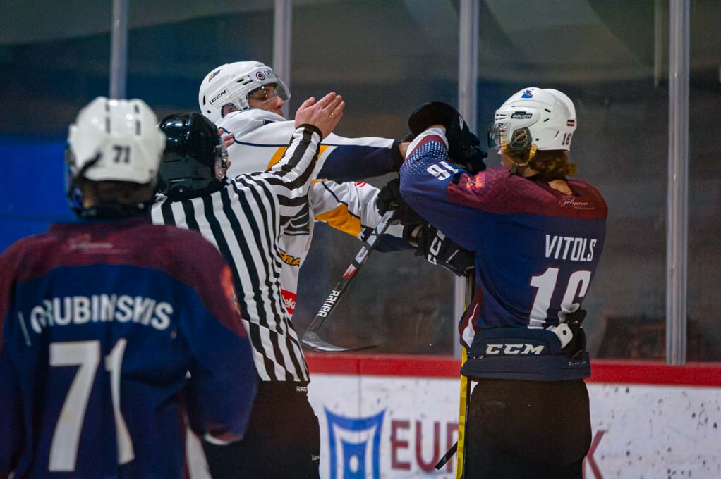 Turpinājumā, spēlējot mazākumā, ripu tukšos vārtos ieraidīja Artūrs Karaša (Vītols), bet jau vienādos vārtos precīzi ripu raidīja Aksels Heize (Lazarenoks) – 5:1.