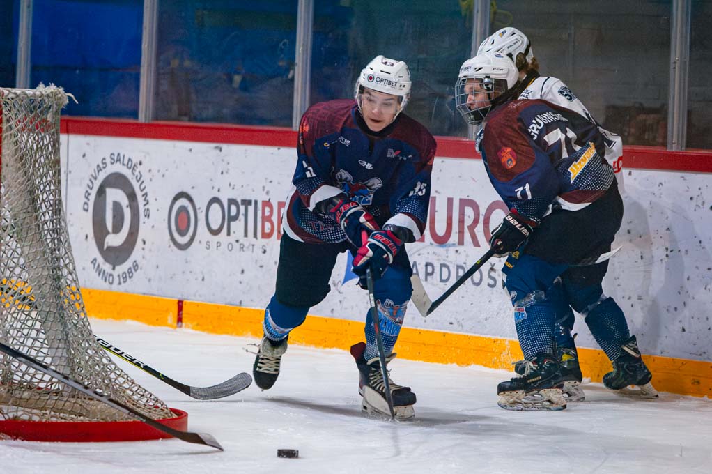 Junioru spēle sākās ar “HS Kurbads” spiedienu uz jelgavniekiem. Viesi burtiski ar spēku centās salauzt jelgavniekus, kuri savā labā izmantoja lielāku meistarību slidošanā un spēlēšanā bez ripas.