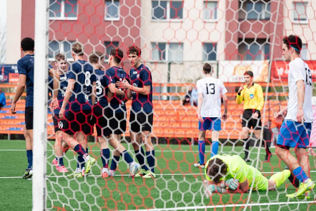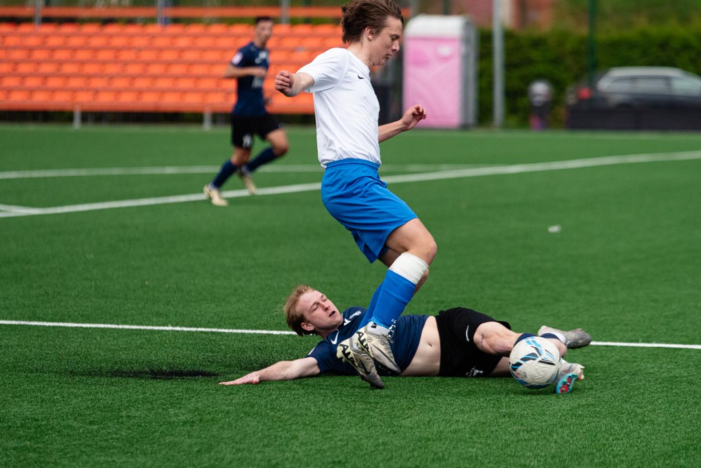 “FS Jelgava-2” turpināja nemitīgi testēt rīdzinieku vārtsargu un aizsardzību, kas salūza 27. minūtē – ar vārtu guvumu izcēlās brazīlietis Ismaels Rodrigešs Kampuss – 2:1. Četras minūtes vēlāk laukuma saimnieki nopelnīja tiesības izpildīt 11 metru soda sitienu. To izpildīt uzņēmās Ēriks Boroduška – viņa spēcīgo sitienu viesu vārtsargs atvairīja, bet Ēriks ar atkārtotu sitienu bumbu raidīja vārtu tīklā, panākot rezultātu 3:1.