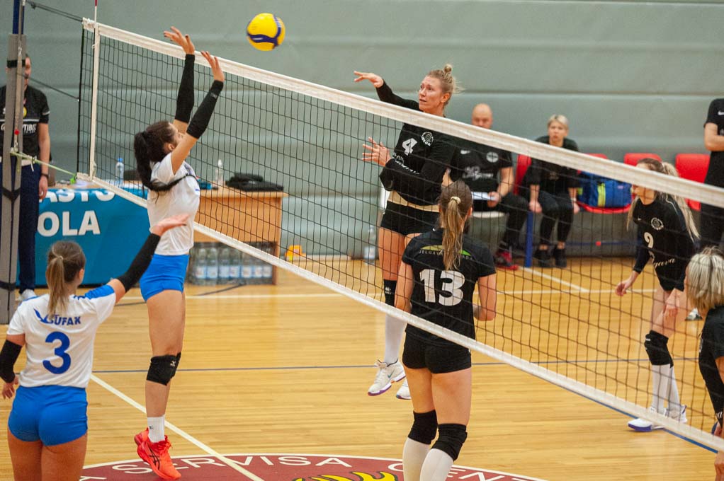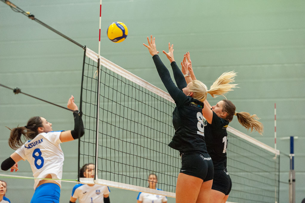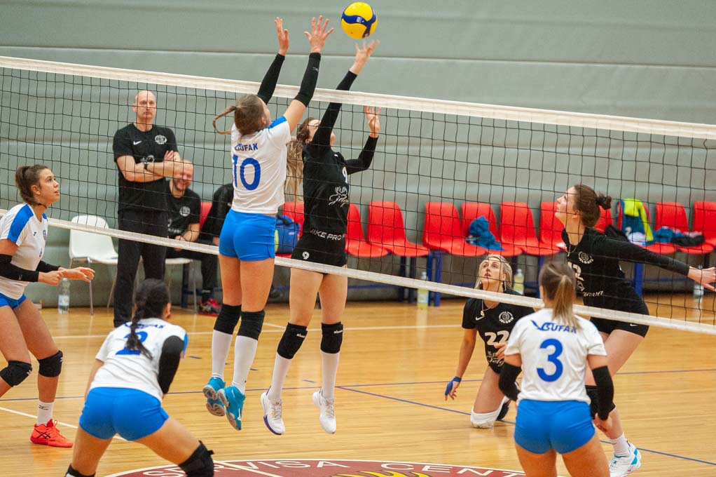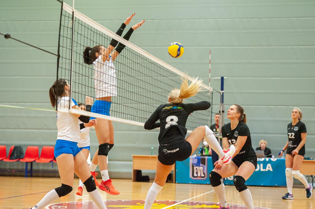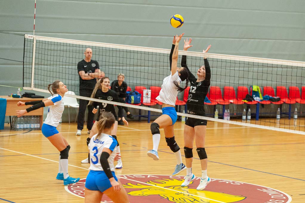 Baltijas sieviešu volejbola līgas spēlē starp VK “Jelgava” un “SUFA/DU” Jelgavas sporta hallē 2022. gada 16. janvārī | Foto: Ruslans Antropovs
