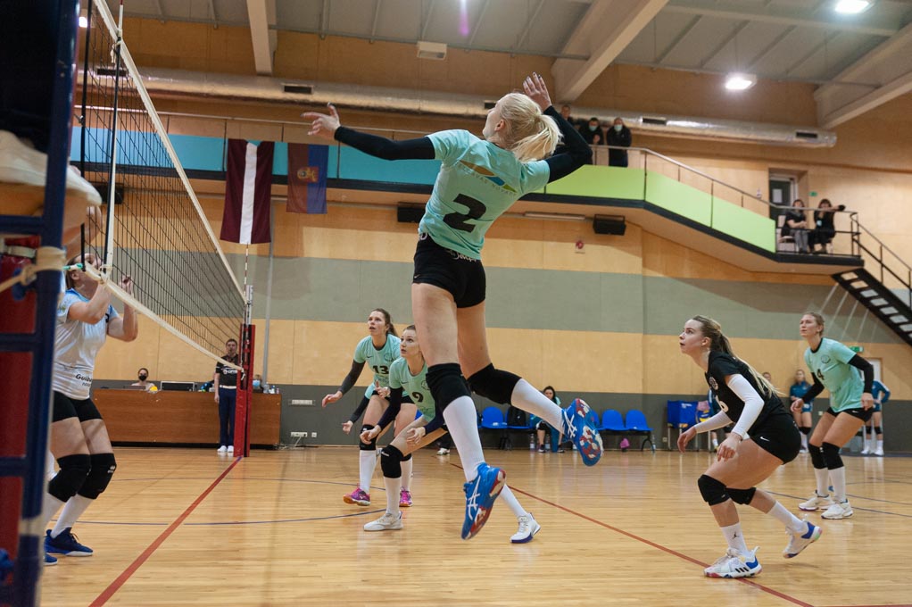 Līdz pieciem setiem nācās aizspēlēties arī pret „AudentesSG/NK”, kas Baltijas līgas 12 komandu tabulā atrodas ap vidu (25:21, 25:23, pēc tam 23:25, 16:25 un 13:15), bet svētdien jau acīmredzot bija iekrājies nogurums. Lai kā centās gan rezultativitātes līderes Liene Šimkuse, Līga Petuhova, Līva Sola, Krista Paegle un Kristīne Gabranova, cēlāja Kristīne Pačkajeva un libero Madara Nemme, pret iepriekš jau nedaudz iepazītajām „Tallinna Űlikool/Kikas” izdevās paņemt vien setu (15:25, 18:25, 25:20 un 22:25).