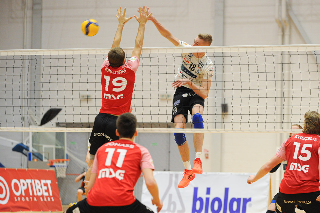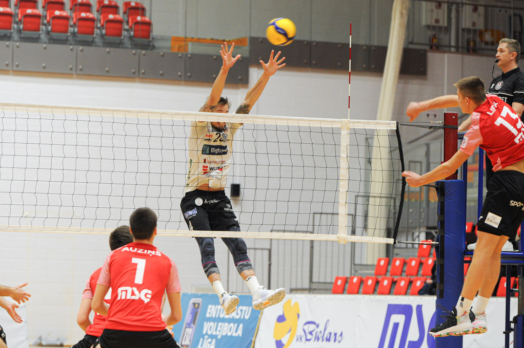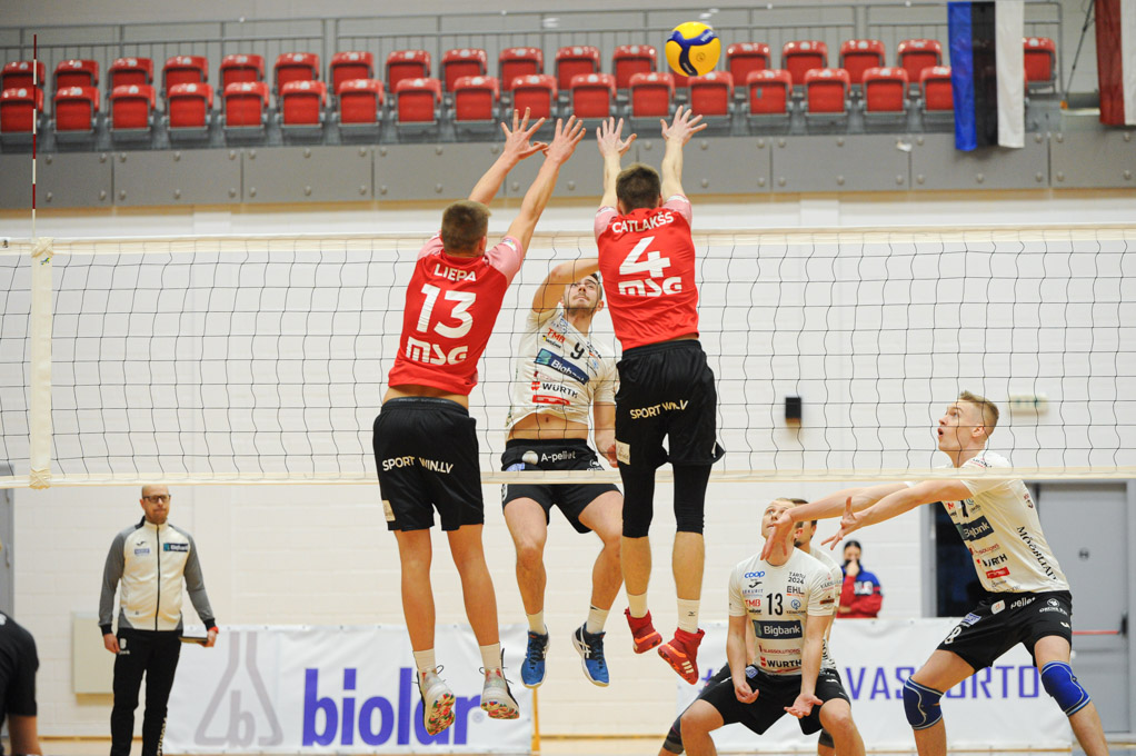 Kā liecina arī nosaukumā ietvertā abreviatūra, šosezon absolūti jaunā sastāvā redzamajā „Biolars/Jelgava/MSĢ” vienībā spēlē Murjāņu Sporta ģimnāzijas jaunieši, un „Biolars/Jelgava” menedžeris Andrejs Jamrovskis skaidro, ka jaundibinātās sadarbības mērķis ir sniegt atbalstu Latvijas volejbola izaugsmei. „Komandas sastāvā ir pārsvarā 2003.– 2004. gadā dzimuši puiši, šā vecuma Latvijas izlase, kuras tuvākais uzdevums ir gatavoties no 8. līdz 10. aprīlim Zemgales Olimpiskajā centrā gaidāmajam Eiropas junioru čempionātam, bet tālākais mērķis – veidot vīru valstsvienības pamatu.” Pēc viņa pašreizējiem vērojumiem, arī mājas spēļu skatītāji arvien vairāk novērtē jauniešu izaugsmi, centienus un sparu, ik epizodē un setā cīnoties līdz galam. Tā tas bija arī šīsdienas spēlē, kur mājinieki gan otrajā, gan trešajā setā labu brīdi turējās vadībā, un pieredzējušajiem igauņiem nācās meklēt nopietnus pretargumentus, lai favorītu loma neciestu. Statistikā ar 19 punktiem rezultatīvākais bija Eduards Stieģelis.