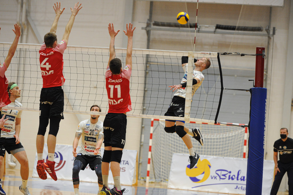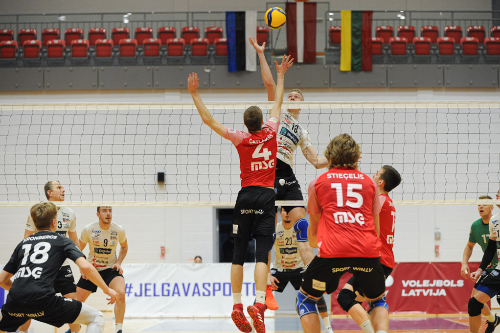 Kā VK „Jelgava” dāmas Baltijas līgā, tā „Biolars/Jelgava/MSĢ” komanda „Credit24” meistarlīgā šodien spēlēja pret igauņu vienībām. Jelgavnieces Mātera ielas hallē četros setos pārspēja „TalTehc/Tradehouse”, bet jelgavnieki Zemgales Olimpiskajā centrā demonstrēja sīvu pretsparu līgas līderiem „Bigbank Tartu”, piekāpjoties ar 17:25, 23:25 un 23:25.