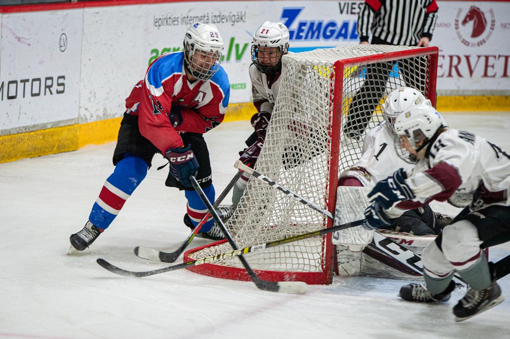 Trešajā trešdaļā “Zemgale Juniors” spēlētāji devās atspēlēties, bet viņu entuziasmu strauji samazināja vārtu zaudējums piektajā minūtē. Jelgavnieku uzbrucēji trīs reizes raidīja ripu vārtu stabos, kas nevairoja psiholoģisko noskaņojumu. Rīdzinieki to piebeidza trešdaļas vidū divās minūtēs gūstot vieglus vārtus. Nelielu prieku sagādāja aizsarga Gustava Krūmiņā vārtu guvumus vairākumā, bet nepietiekami, lai spētu atspēlēties un spēles noslēgumā rīdzinieki guva vārtus izmantojot skaitlisko pārsvaru.