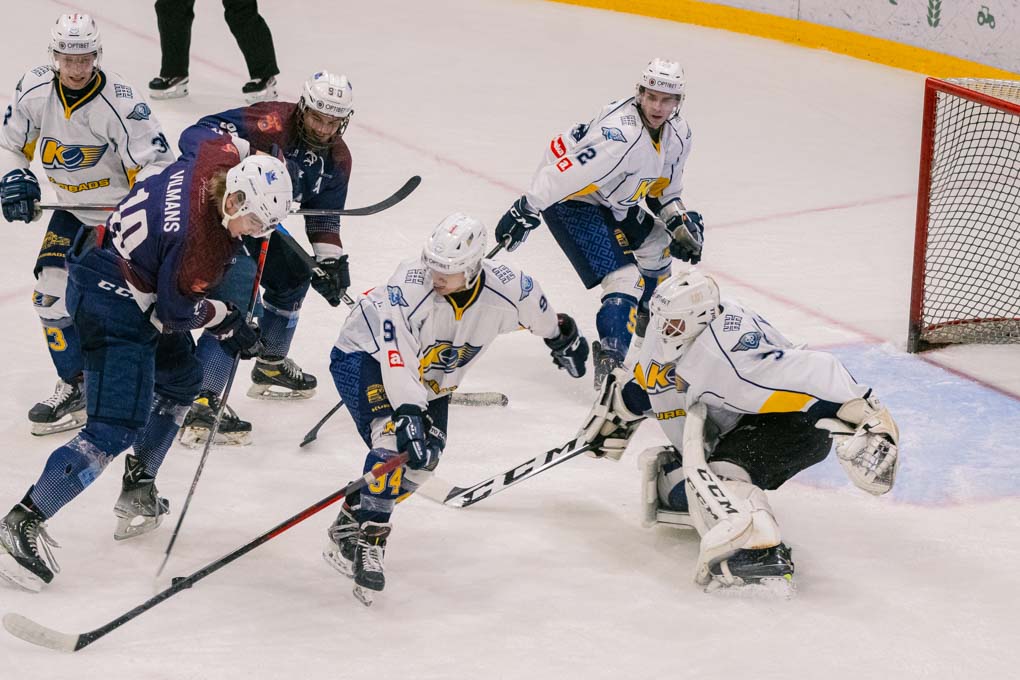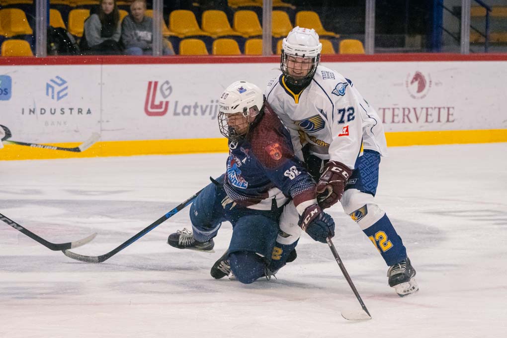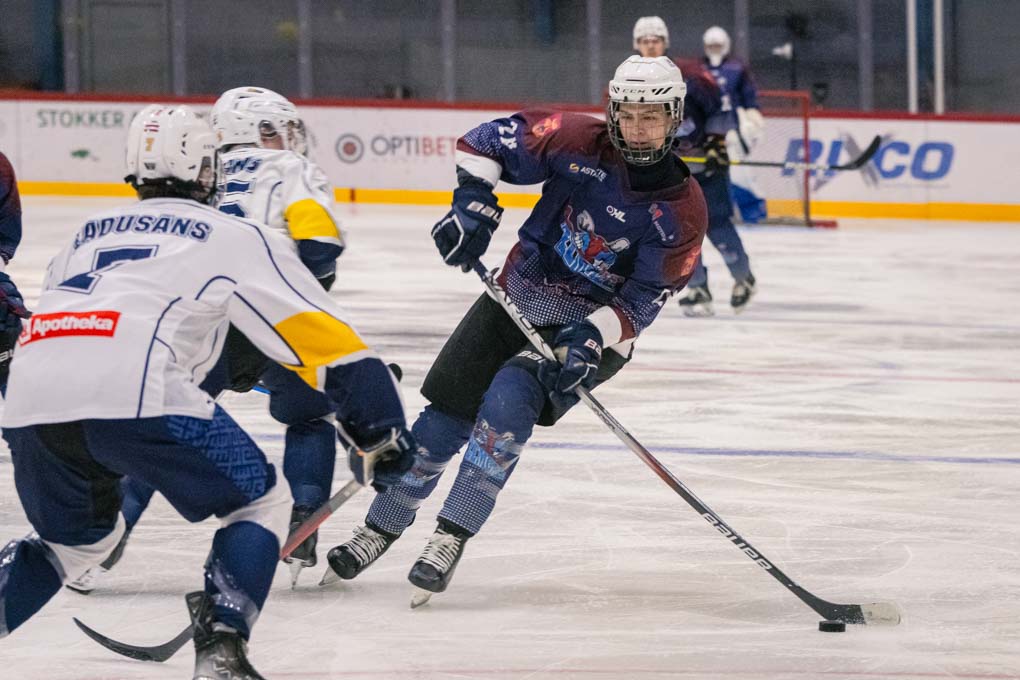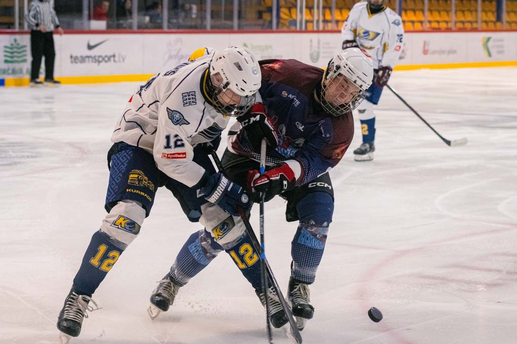 Trešajā trešdaļā “Zemgale Juniors” aptrūkās gan spēki, gan precizitāte. Sākumā Artūrs Sedjukevičs izlīdzināja rezultātu, bet četras minūtes līdz spēles beigām Davids Livšics atkārtoti izvirzīja “HS Kurbads” vadībā – 3:4.