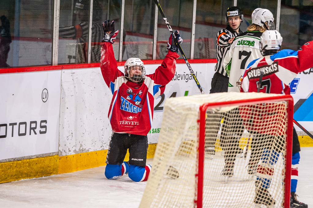 Pēcspēles metienos “Zemgale Juniors” rindās ar vārtu guvumiem atzīmējās uzbrucējs Kevins Strādnieks un aizsargs Renārs Džerods Alksnis, bet vārtsargs Mariuss Bajaruns-Galejs atraidīja abus pretinieku metienus – 5:4.