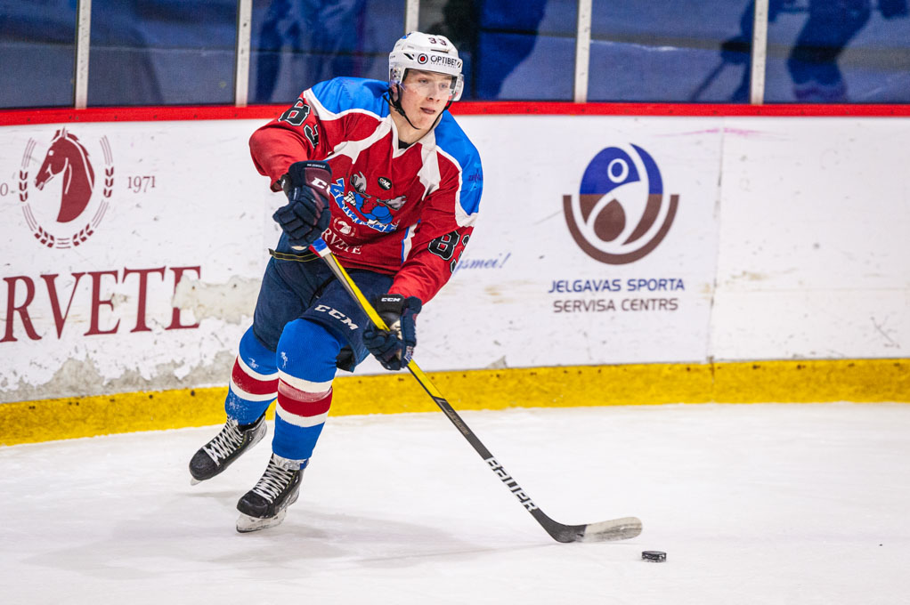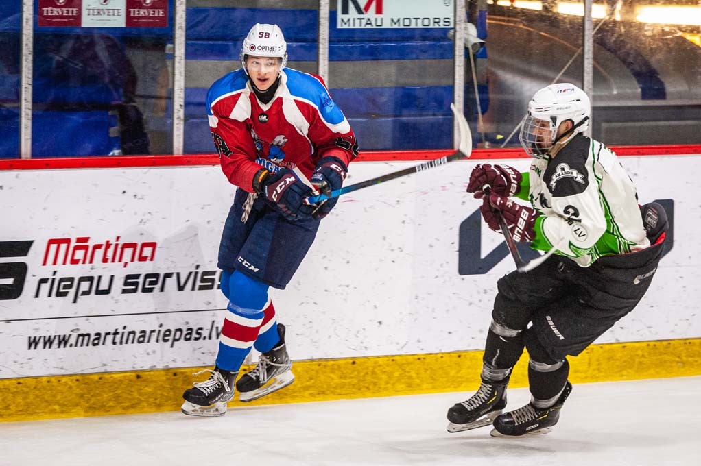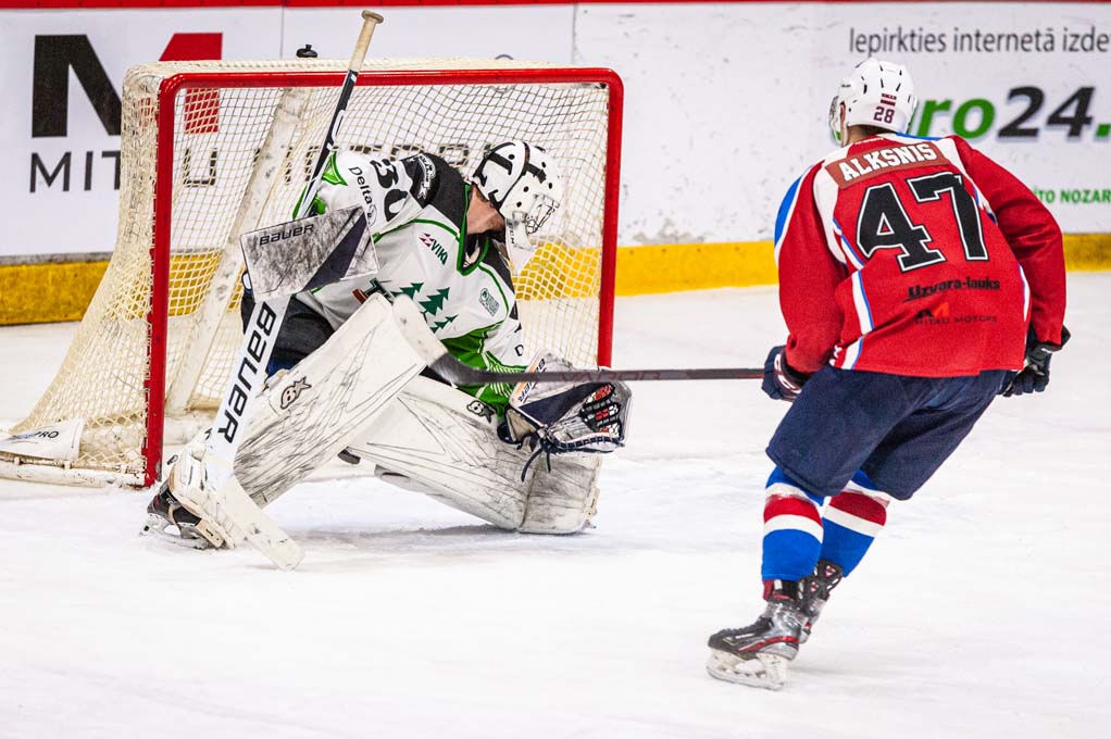 Spēle sākās ar pārliecinošu “Zemgale Juniors” ripas un spēles kontroli, kas lika visiem daudzas reizes pārkāpt noteikumus. Jelgavnieki vairākumus neizmantoja, bet pirmajā trešdaļā guva divus vārtus. Sākumā precīzs bija Helmuts Spriņģis, bet vēlāk Aleksis Ostaņkovičs – 2:0.