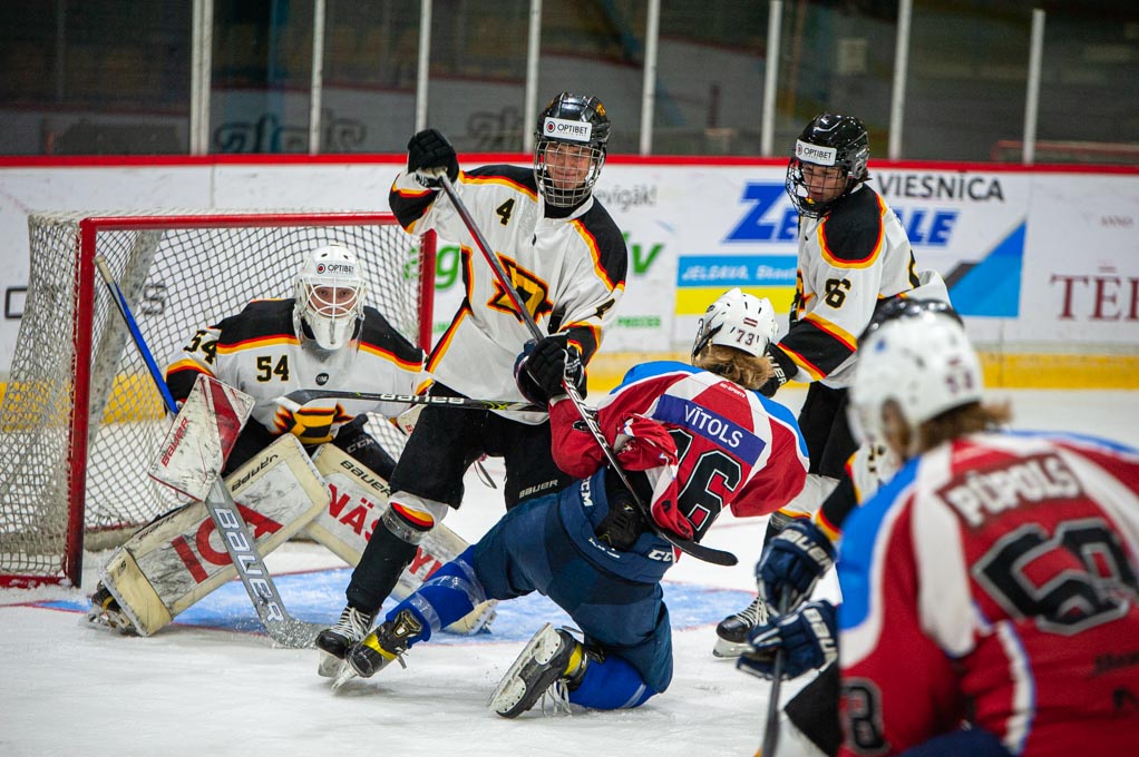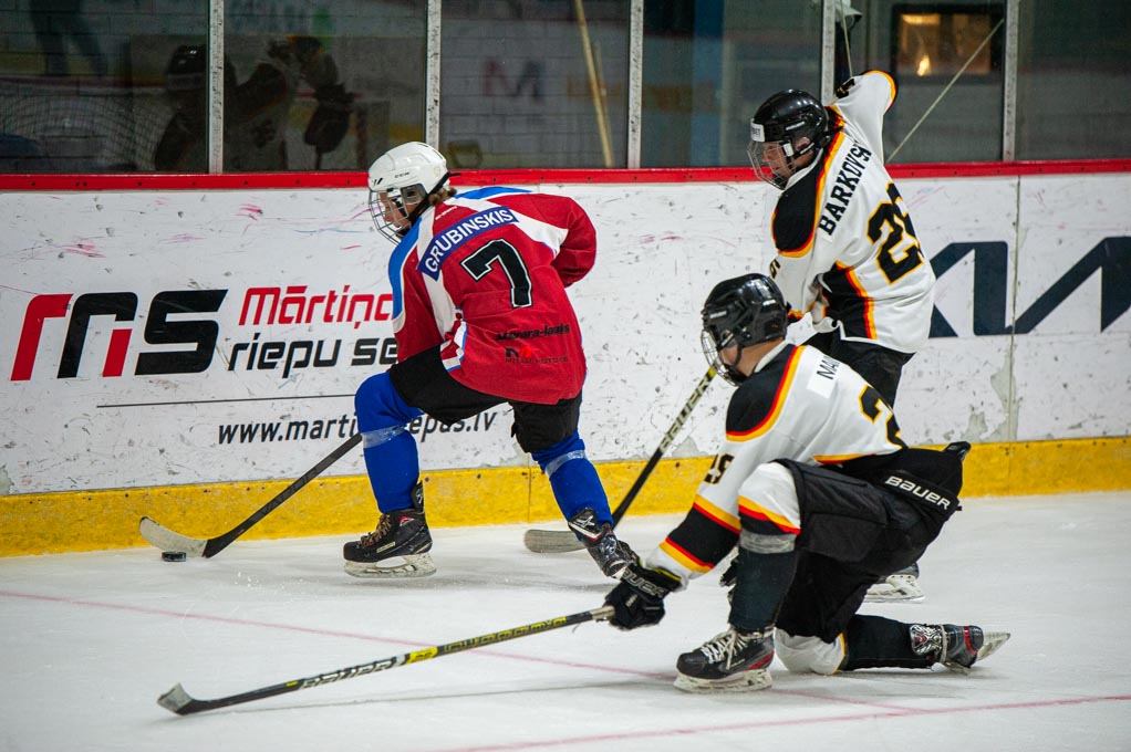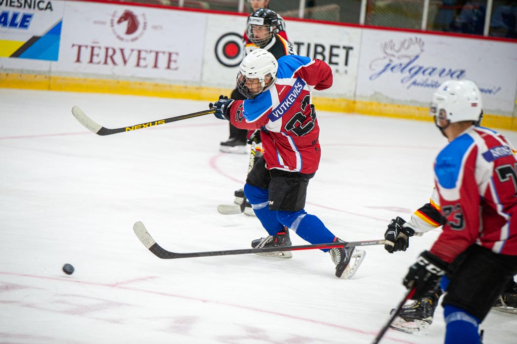 “Zemgale Juniors” hokejisti pārņēma spēles kontroli no pirmajām tikšanās sekundēm un jau ceturtajā minūtē ar Reinarda Dāvja Pētersona precīzu metienu atklāja spēles rezultātu. Līdz trešdaļas beigām ar vārtu guvumiem atzīmējās – Reinis Eberliņš, Silvestrs Uvis Lazarenoks un Uldis Pūpols – 4:0.