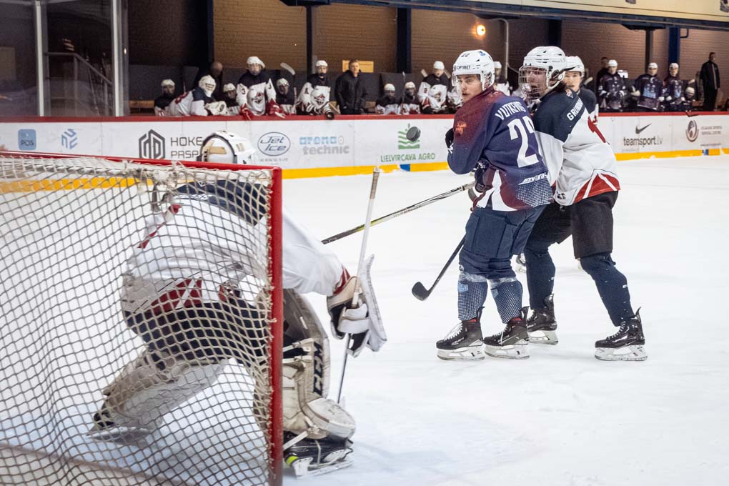 Mājinieku rindās bija vēl pieci spēlētāji, kuri regulāri spēlē “Optibet” Baltijas līgas komandā. Tieši pieaugušajā komandā spēlējošais uzbrucējs Kevins Strādnieks atklāja spēles rezultātu pirmajā trešdaļā – 1:0.