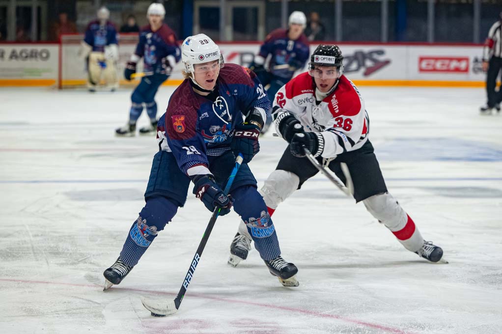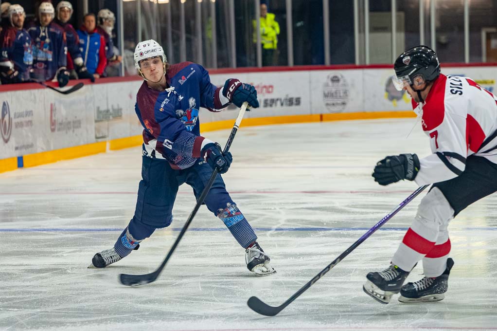 Uzbrucējs Gustavs Millers atklāj spēles rezultātu pret Igaunijas vienību “HC Panter” | Foto: Ruslans Antropovs
