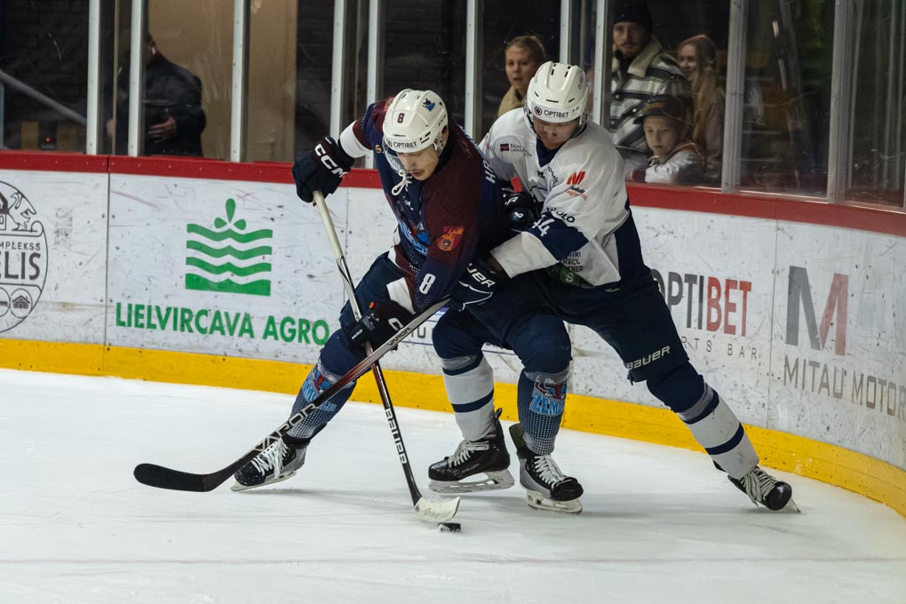 Spēle sākās ar nelielu “Zemgale/LBTU” spiedienu, ko viesi ātri novērsa. Pirmā trešdaļa tika aizvadīta ar līdzvērtīgu sniegumu, kurā hokejisti cieši sedza savus pretiniekus, neļaujot izvērst ātrus un bīstamus uzbrukumus.