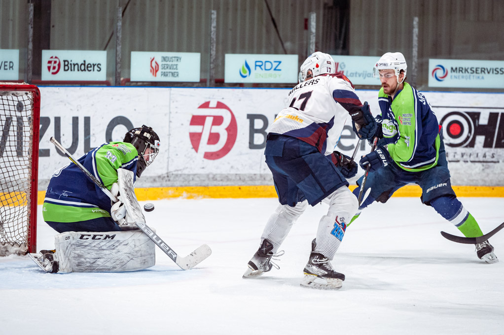 Pirmās trešdaļas otrās puses sākumā jelgavnieki izmantoja savu priekšrocības, kad jauno hokejistu Kristapa Kristiņa un Rainera Rulles izspēli ar vārtu guvumu noslēdza Gustavs Millers – 1:0.