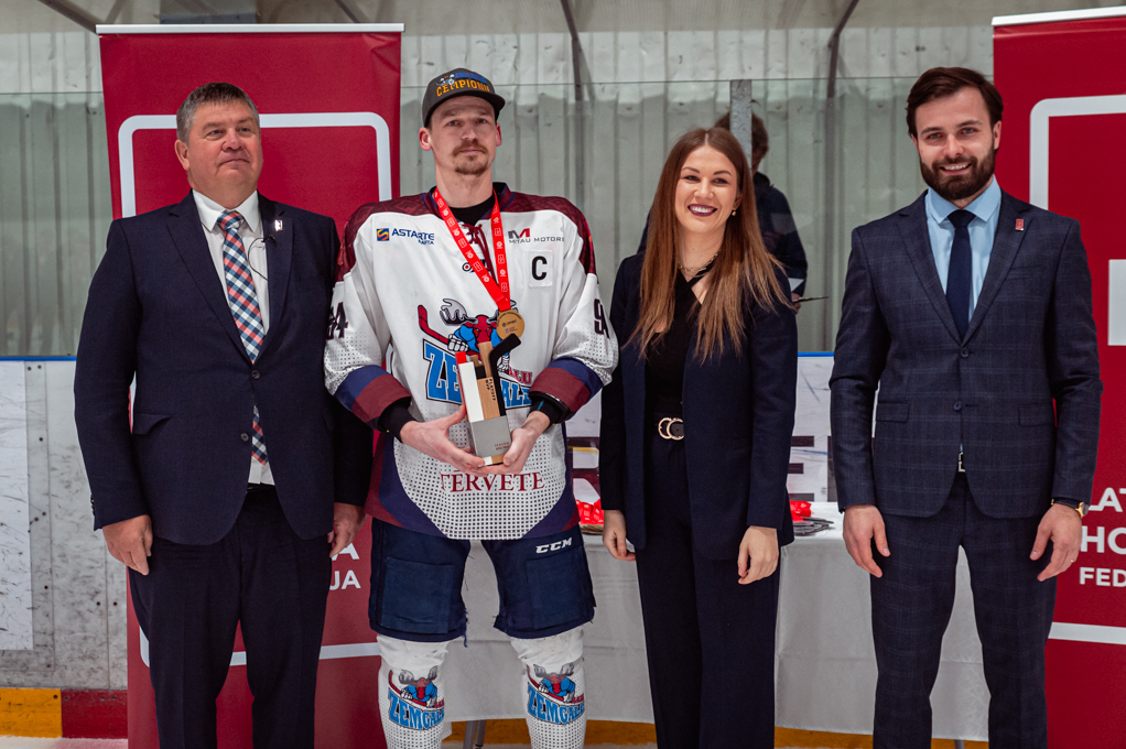 Jelgavas hokeja komandas kapteinis Gatis Gricinskis no “Latvijas Hokeja federācijas” priekšsēdētāja Aigara Kalvīša rokām saņēma ne tikai uzvarētāju kausu, bet arī izslēgšanas kārtas vērtīgākā spēlētāja piemiņas apbalvojumu. Jelgavnieku kapteinis izslēgšanas kārtas 12 spēlēs guva 6 vārtus un atdeva 11 rezultatīvas piespēles.
