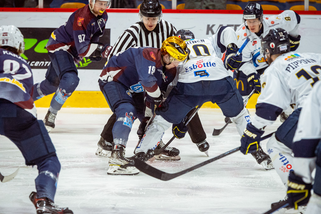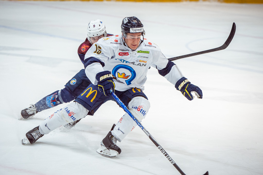 Septiņas minūtes vēlāk jau paši jelgavnieki nepaspēja pakaļ “Kiekko-Espoo” uzbrucējam Joni Pīponenam, kurš atjaunoja viesu divu vārtu pārsvaru – 1:3.