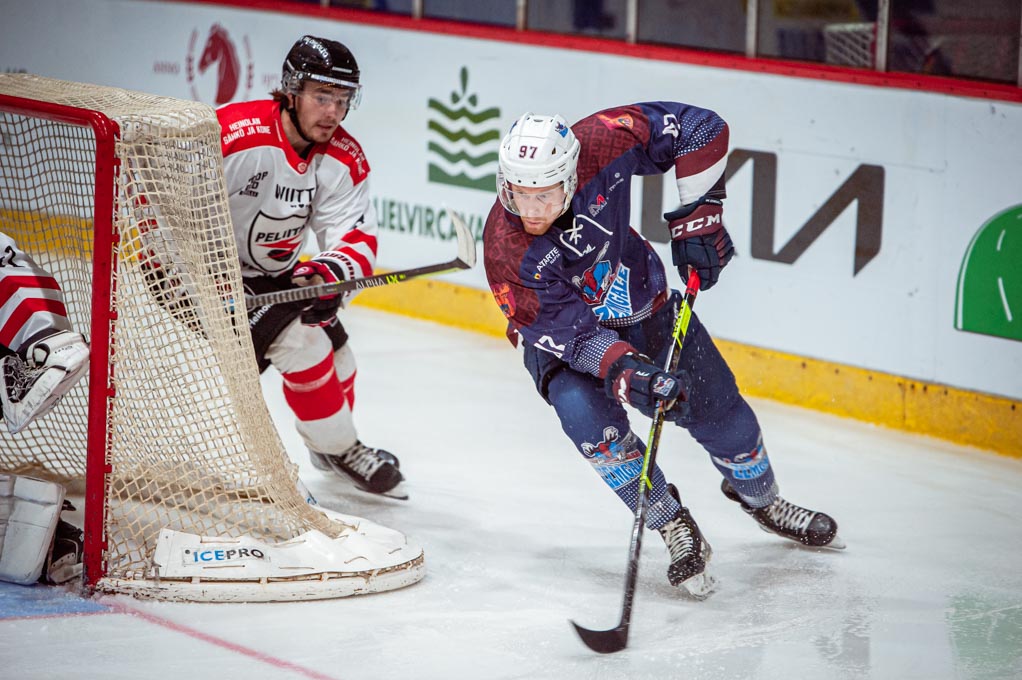 “Peliitat” hokejisti pirmās trešdaļās sākumā uzrādīja ļoti lielu ātrumu un brīžiem iespieda “Zemgale/LLU” aizsardzības zonā. Astotajā minūtē aizsargs Matias Lentamaki ar precīzu metienu no zilās līnijas atklāja spēles rezultātu.