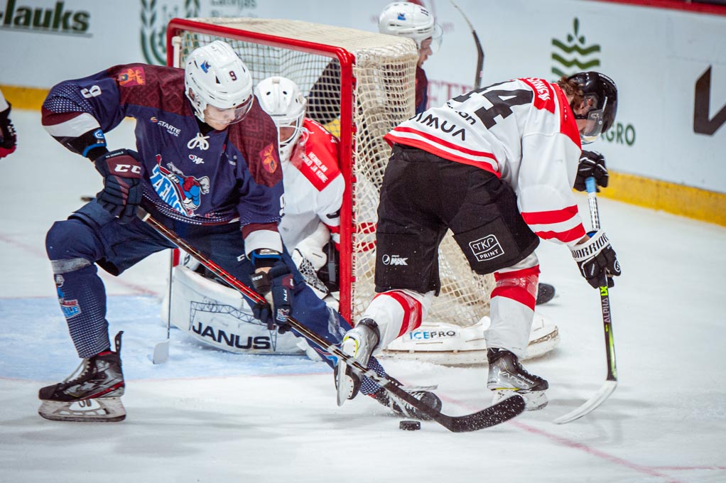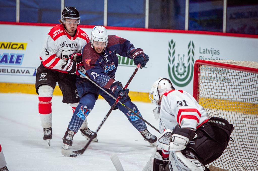 Jelgavas hokeja komanda “Zemgale/LLU” sestdien ar rezultātu 4:2 (1:1; 1:0; 2:1) pieveica hokejistus no Heinolas pilsētas komandas “Peliitat”, gūstot dubulto panākumu “Mestis” līgas iesākumā.